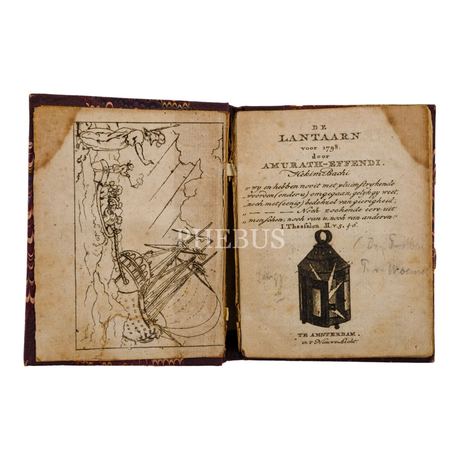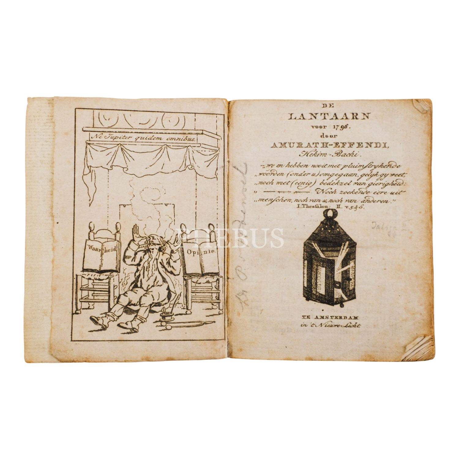 Hollandalı aydınlanmacı ve seyyah Pieter van Woensel´in Hekimbaşı Murat Efendi takma adıyla yazdığı "Fener" (Lantaarn) adlı ünlü yıllığı. Esprili ve eleştirel bakış açısıyla tanınan yazar, Türkler hakkındaki basmakalıp düşüncelere ve yanlış yönlendirmelere kapılmadan kendi gözlem ve düşünceleriyle hareket etmiş, Avrupalıları bu konuda eleştirmiştir.