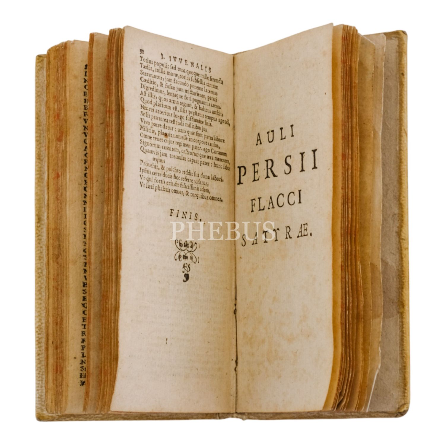 IVNII IVVENALIS ET AVLI PERSII FlACCI SATYRE - Ex doct: viror: emendatione. Amstelodami, Apud Iudocum Hondium, 116 sayfa, 6x11 cm...