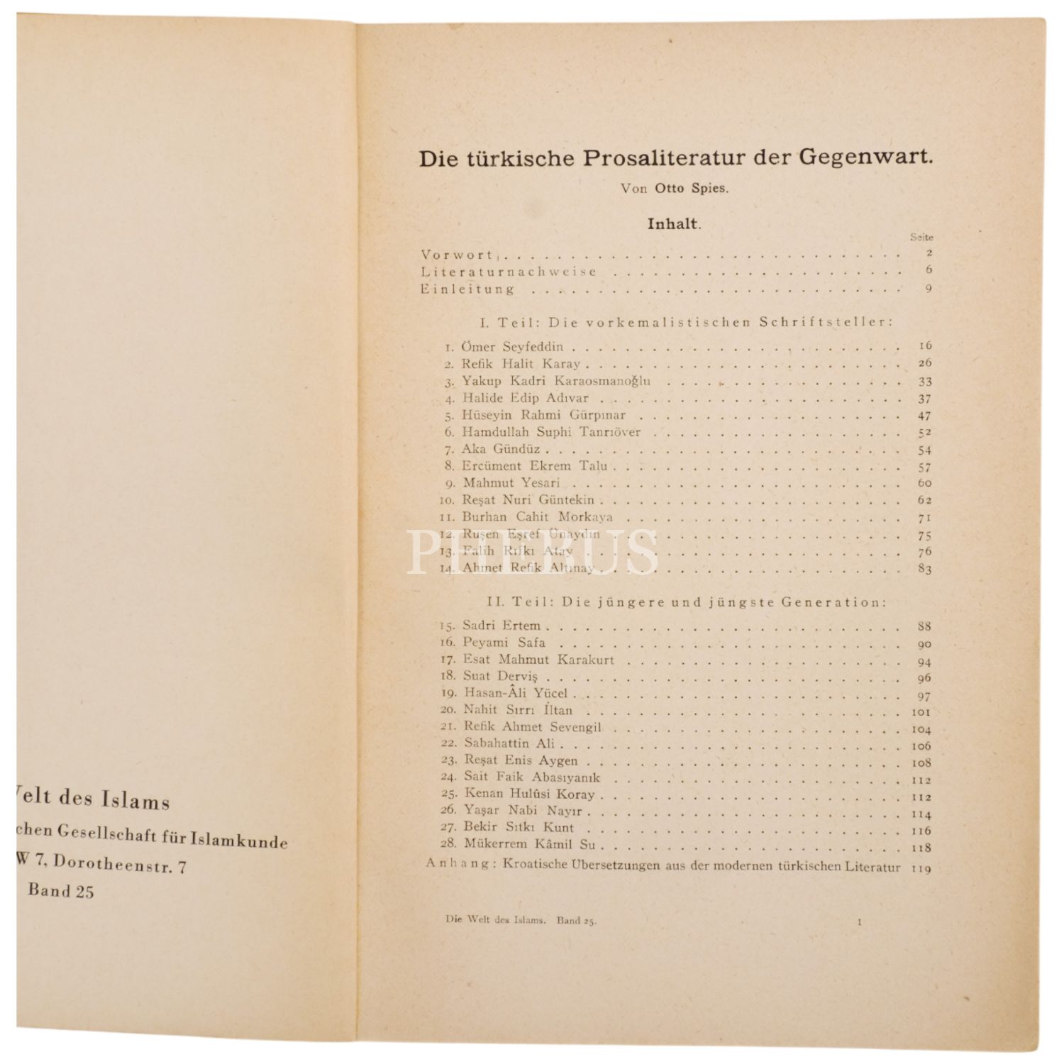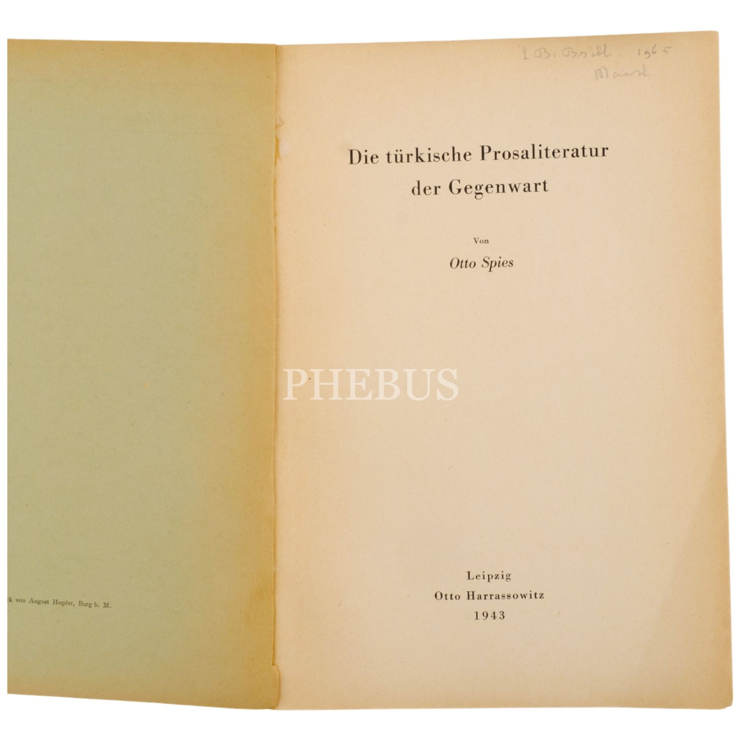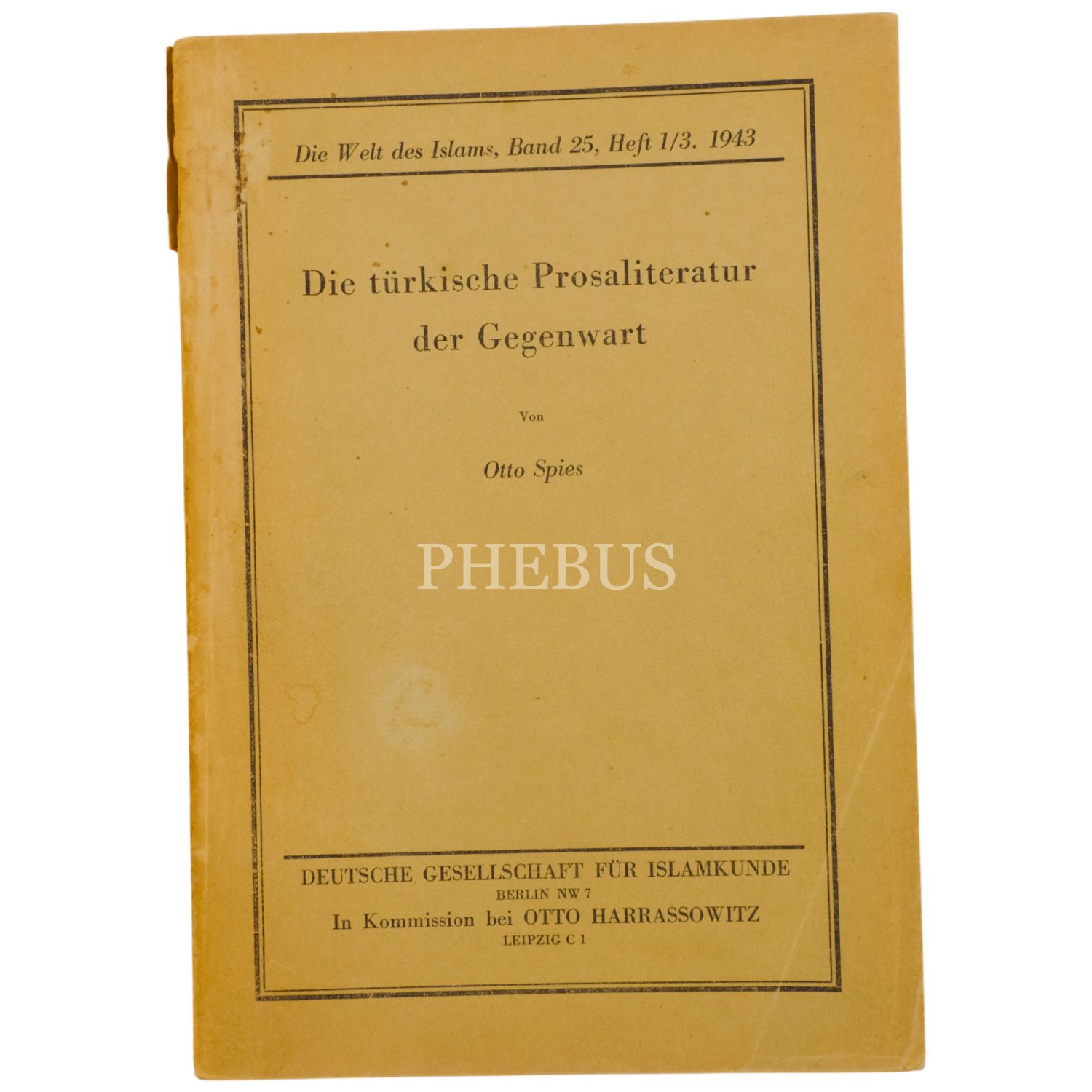 DIE TÜRKISCHE PROSALITERATUR der GEGENWART, Otto Spies, 1943, Otto Harrassowitz, Leipzig, 120 sayfa, 16x22 cm...