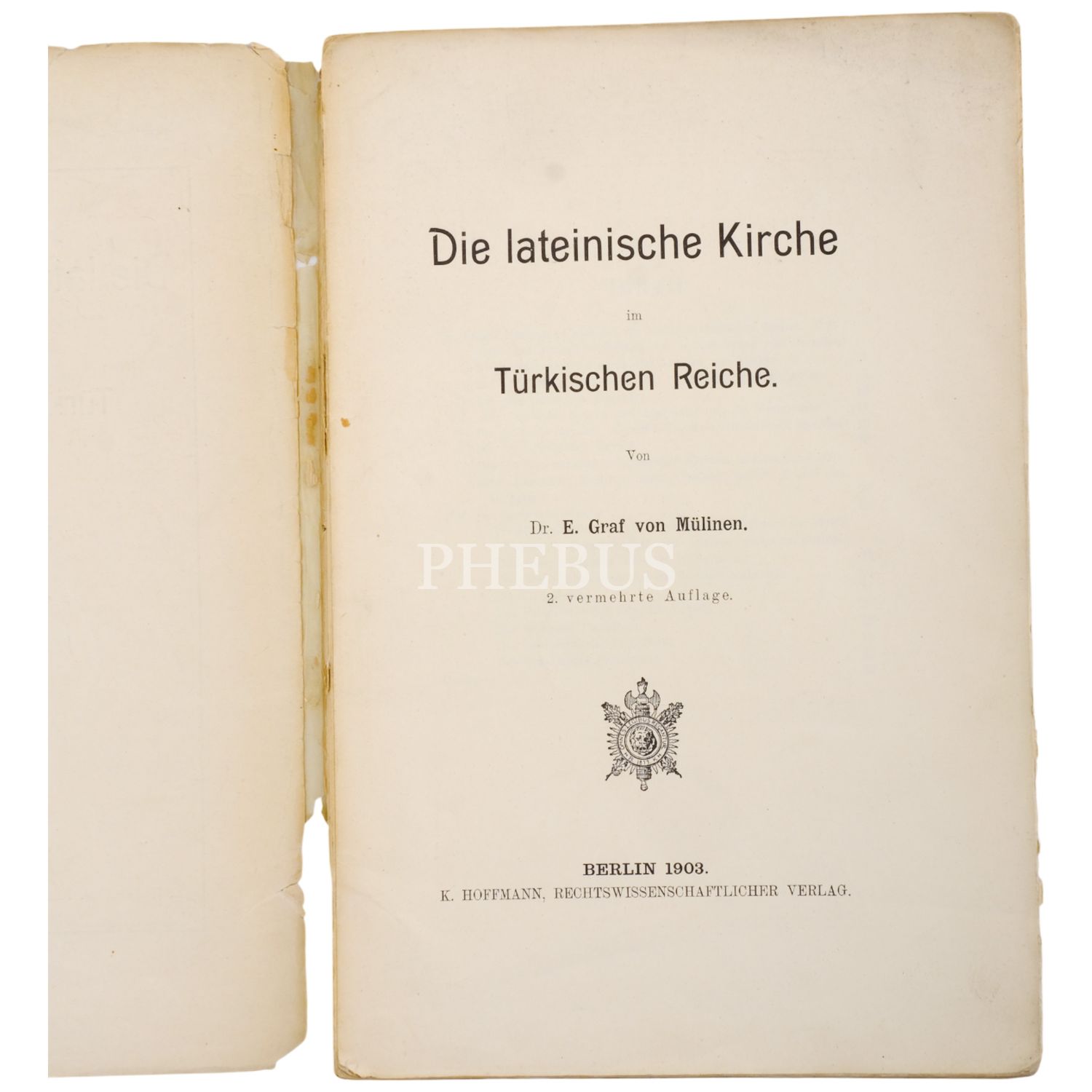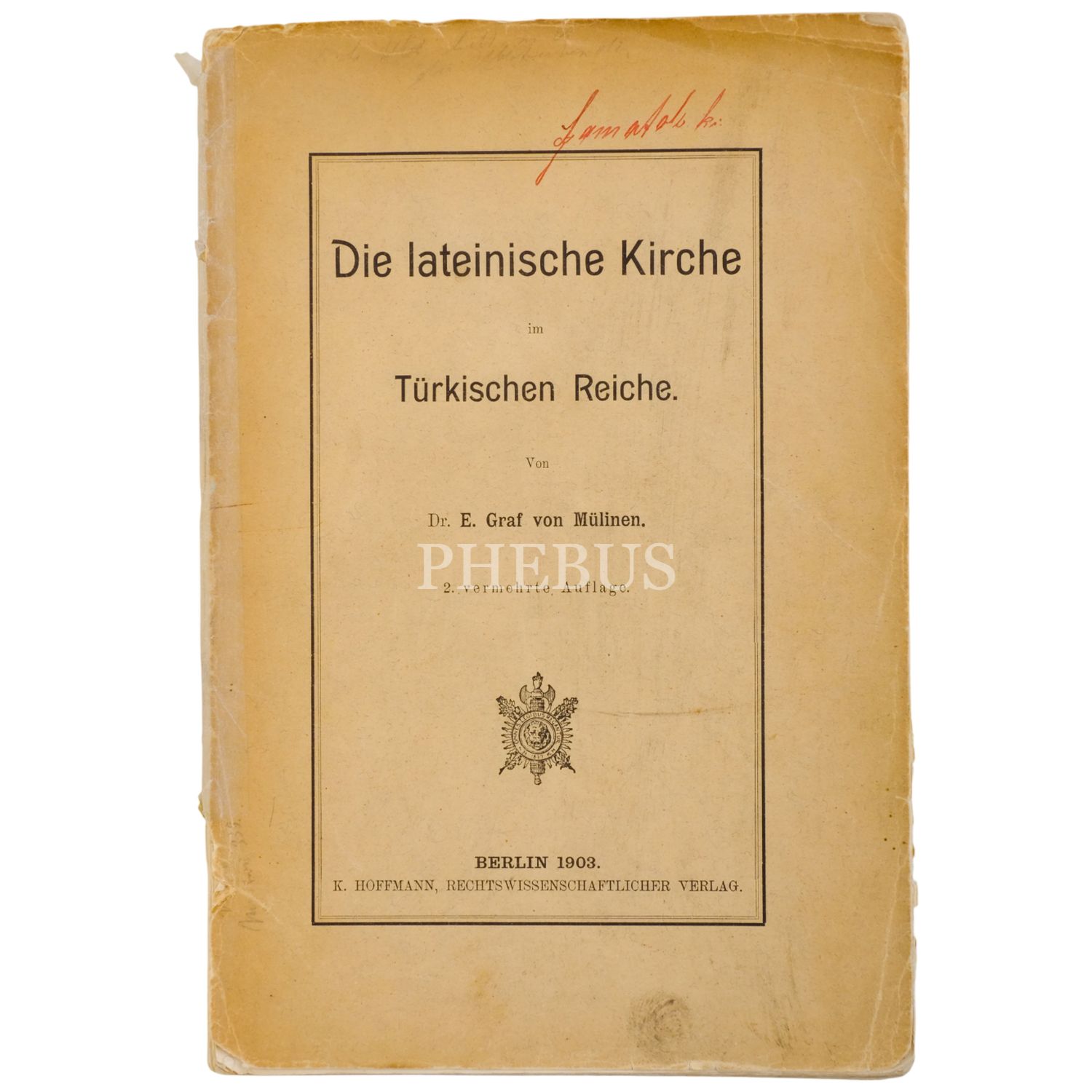 DIE LATEINISCHE KIRCHE IM TÜRKISCHEN REICHE, E. Graf von Mülinen, 1903, K. Hoffmann, Rechtswissenschaftlicher Verlag, Berlin, 64 sayfa, 16x24 cm...