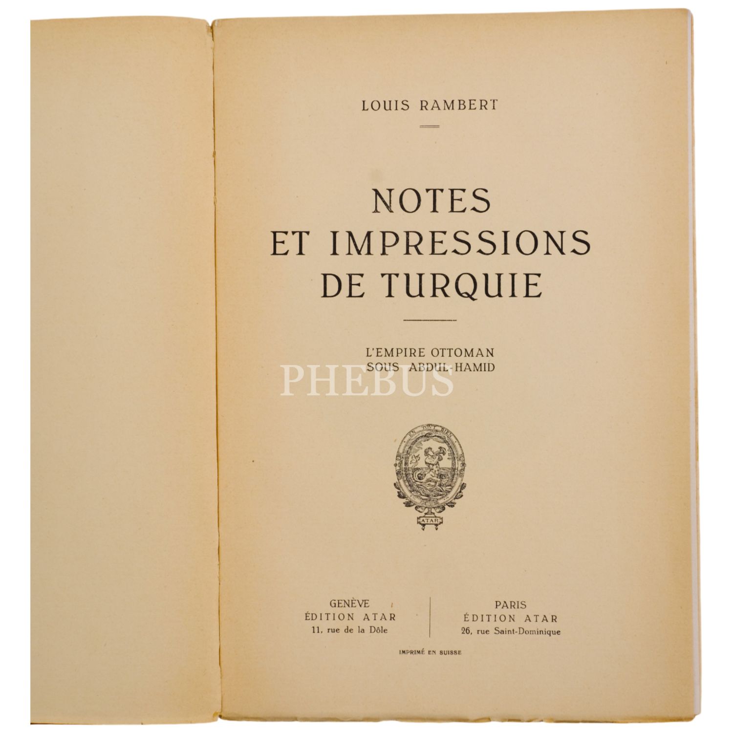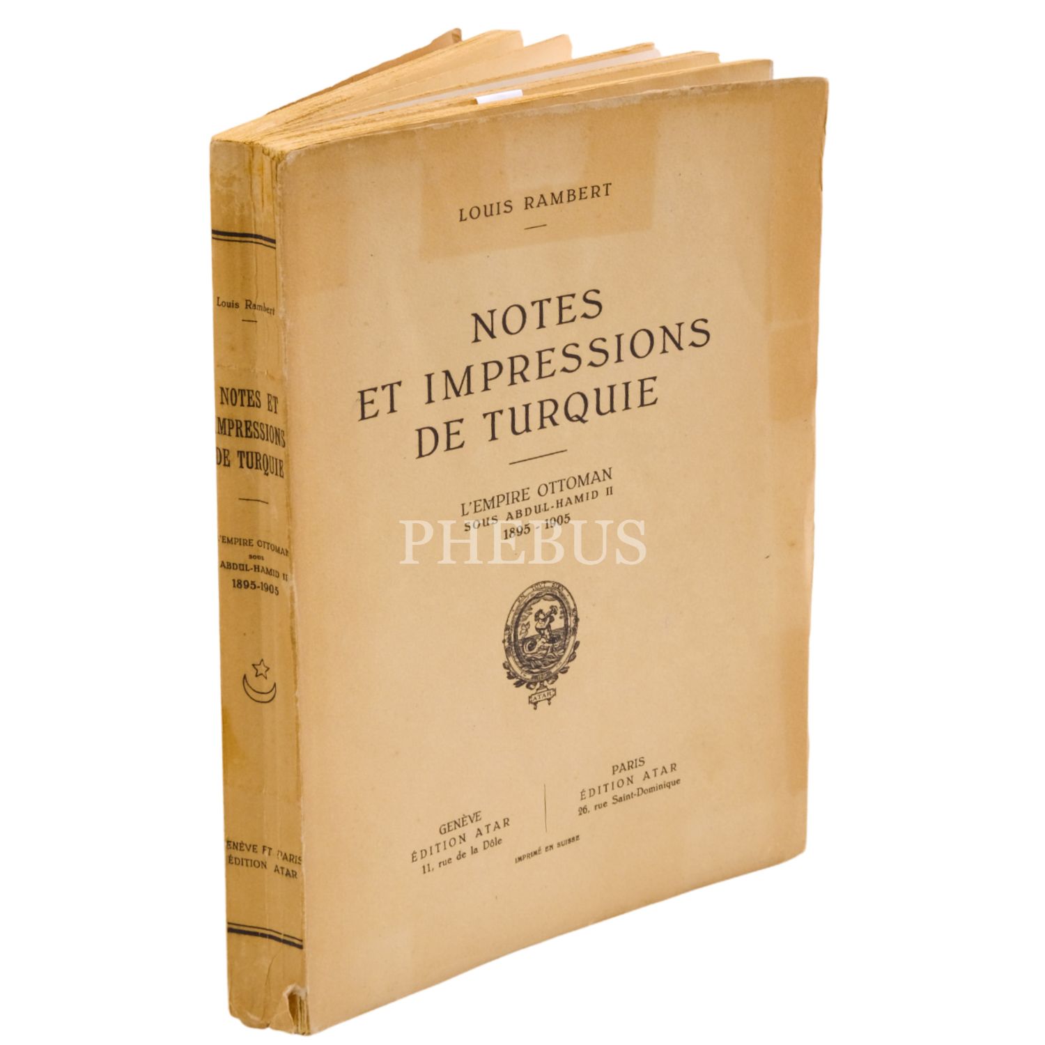 NOTES et IMPRESSIONS de TURQUIE, Louis Rambert, 1926, Atar, İsviçre, 355 sayfa, 17x24 cm...