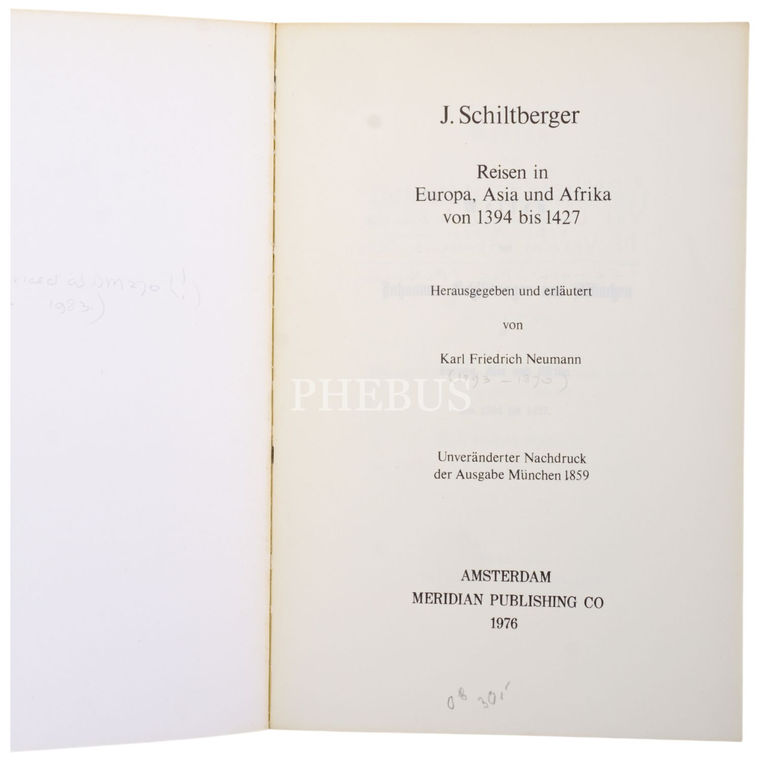REISEN IN EUROPA, ASIA UND AFRIKA VON 1394 BIS 1427, J. Schiltberger, Karl Friedrich Neumann, 1976, Meridian Publishing Co., Amsterdam, 166 sayfa, 15x23 cm...