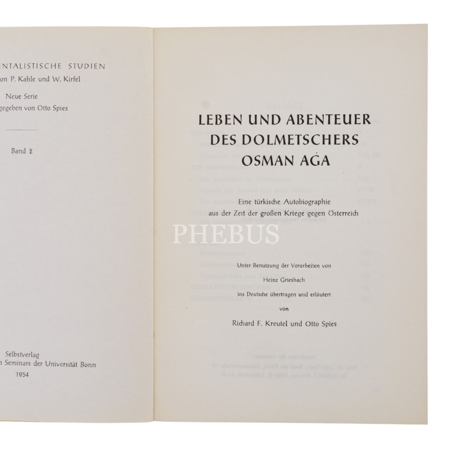 LEBEN UND ABENTEUER DES DOLMETSCHERS OSMAN AGA, Heinz Griesbach, Richard F. Kreutel & Otto Spies, 1954, Selbsverlag des Orientalischen Seminars der Universitat Bonn, 187 sayfa, 15x21 cm...