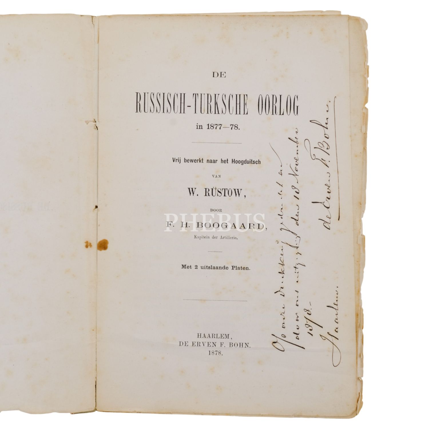 DE RUSSISCH-TURKSCHE OORLOG IN 1877-78, W. Rüstow & F. H. BOOGARD, 1878, De Erven F. Bohn, Haarlem, 245 sayfa, 16x23 cm...