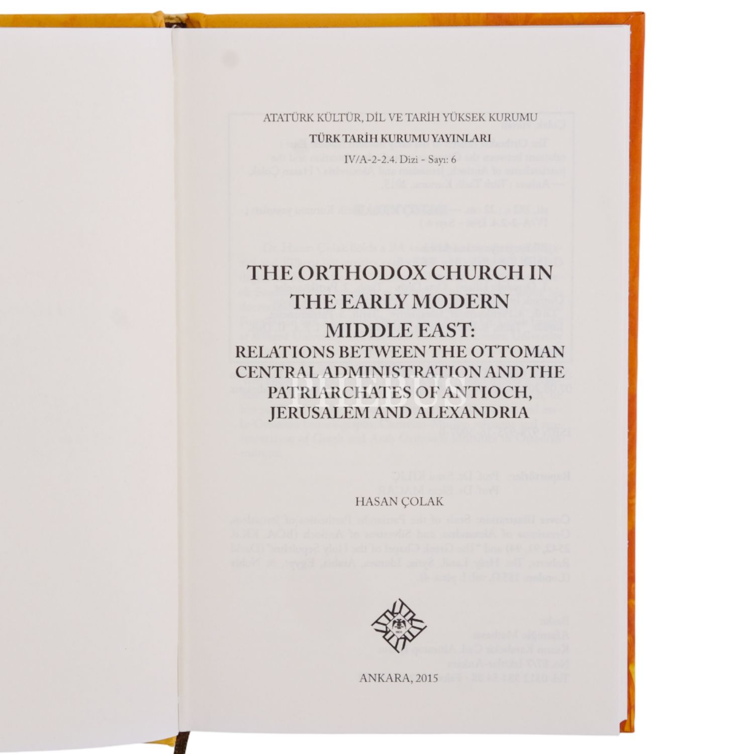 THE ORTHODOX CHURCH IN THE EARLY MODERN MIDDLE EAST: RELATIONS BETWEEN THE OTTOMAN CENTRAL ADMINISTRATION AND THE PATRIARCHATES OF ANTIOCH, JERUSALEM AND ALEXANDRIA, Hasan Çolak, 2015, Atatürk Kültür, Dil ve Tarih Yüksek Kurumu Yayınları, 282 sayfa, 14x22 cm...