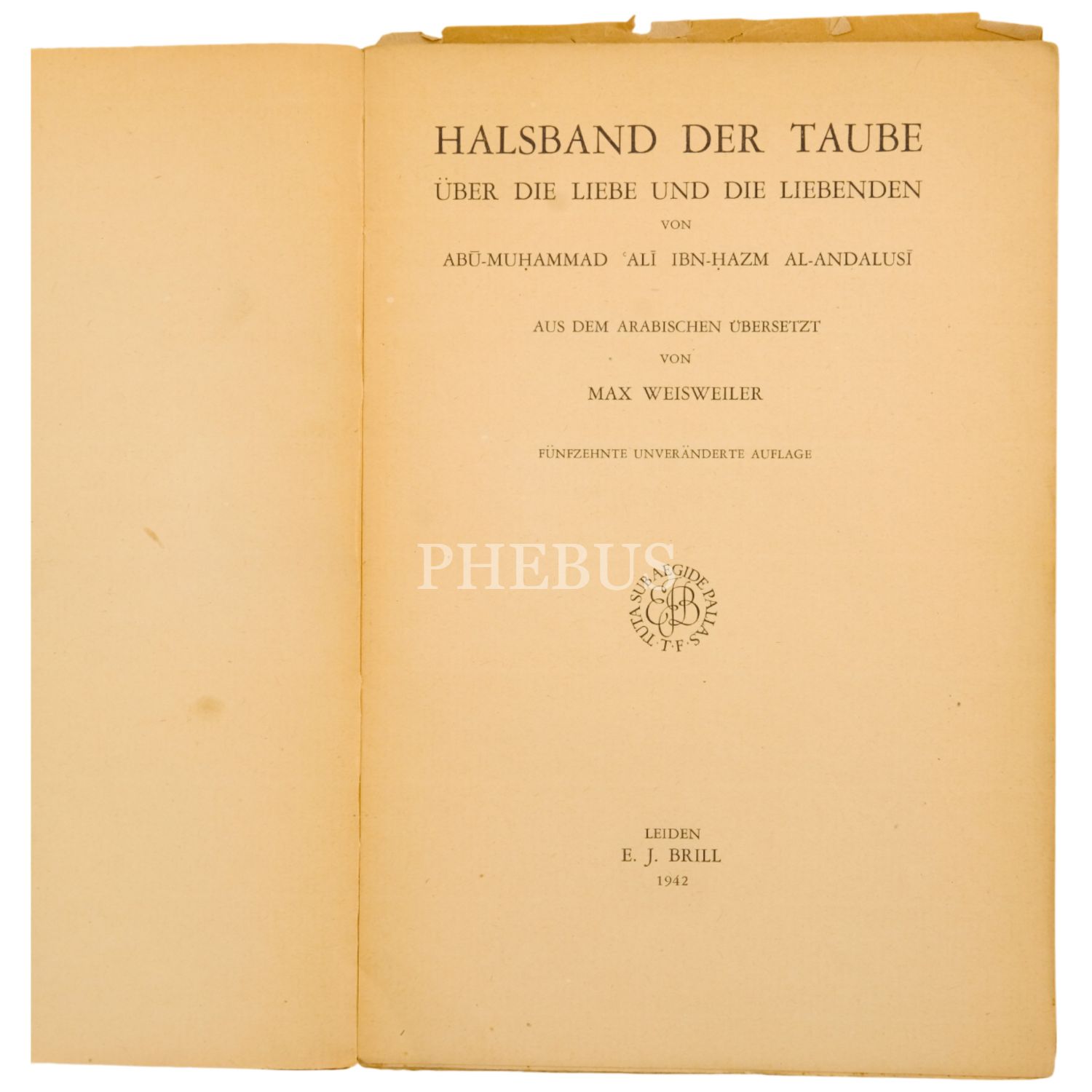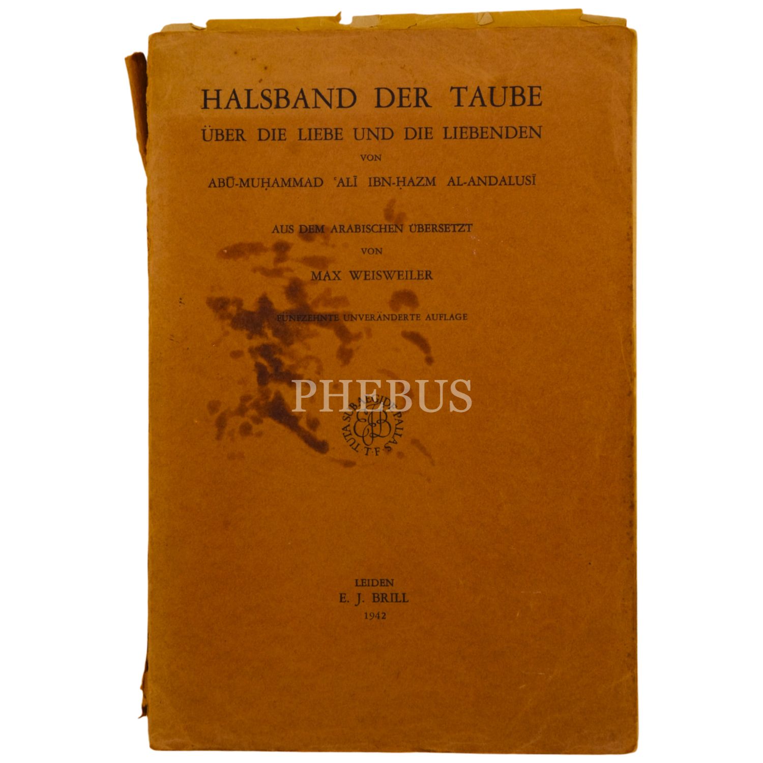 HALSBAND der TAUBE, ÜBER LIEBE und die LIEBENDEN, İbn Hazm, çeviren: Max Weisweiler, 1942, E. J. Brill, Leiden, 464 sayfa, 16x24 cm...