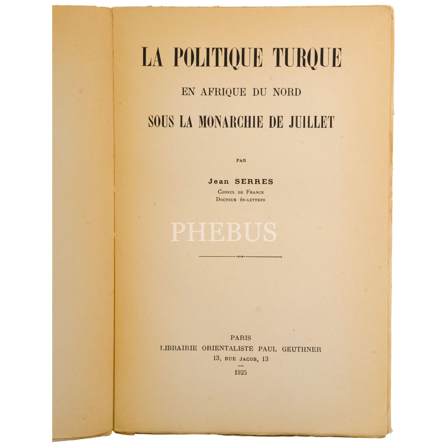 LA POLITIQUE TURQUE en AFRIQUE du NORD SOUS la MONARCHIE de JUILLET, Jean Serres, 1925, L. O. Paul Geuthner, 392 sayfa, 17x25 cm...