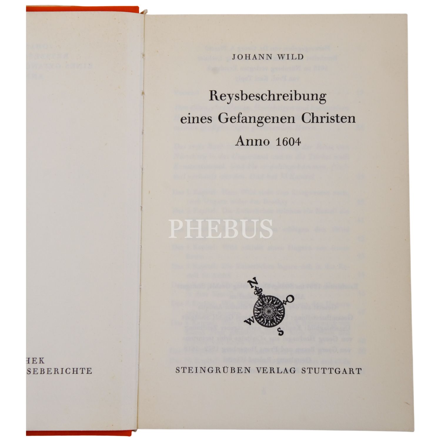 REYSBESCHREIBUNG EINES GEFANGENEN CHRISTEN ANNO 1604, Johann Wild, Steingrüben Verlag Stuttgart, 390 sayfa, 12x18 cm...