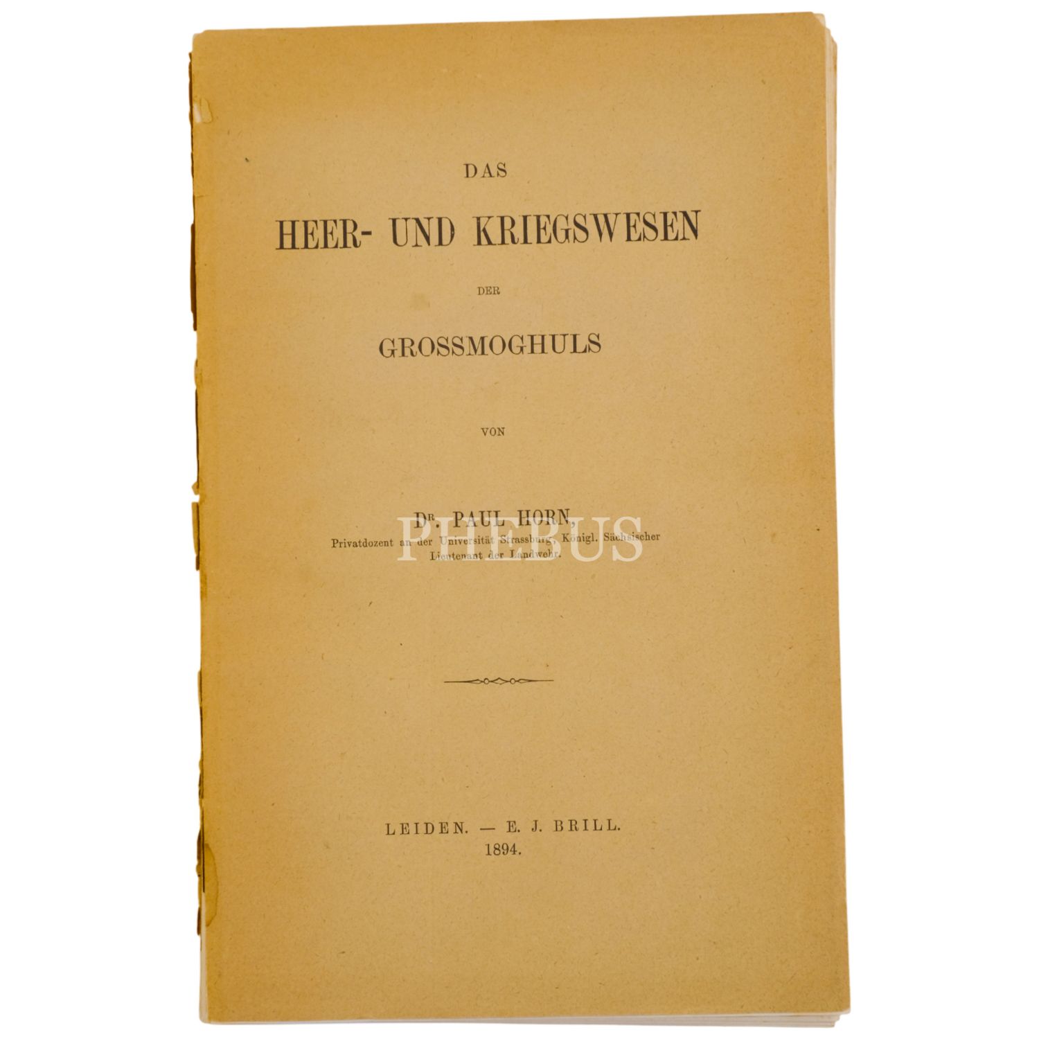 DAS HEER- UND KRIEGWESEN der GROSSMOGHULS, Dr. Paul Horn, 1894, E. J. Brill, Leiden, 151 sayfa, 15x23 cm...