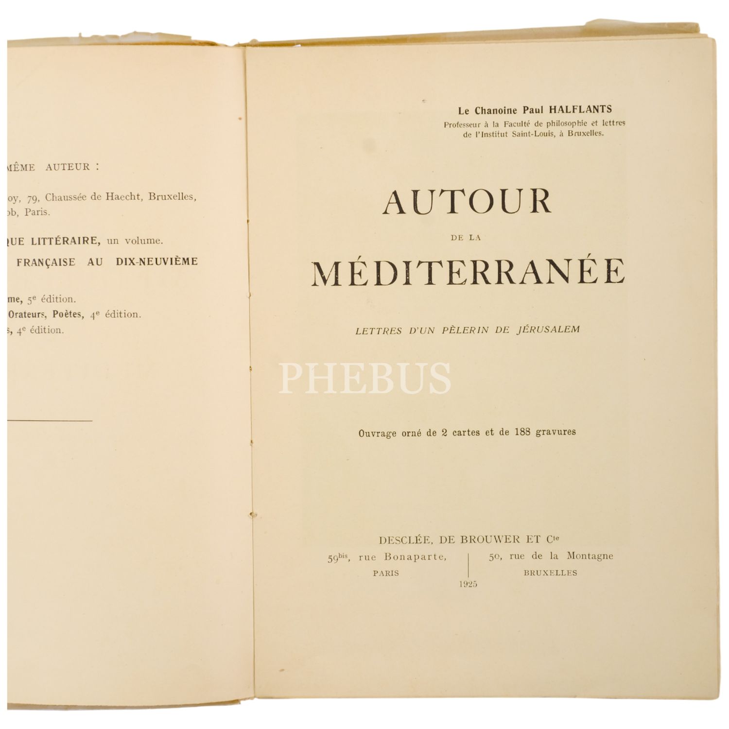 AUTOUR de la MEDITARRANEE, Paul Halflants, 1925, Desclee de Brouwer, Paris, 224 sayfa, 15x22 cm...