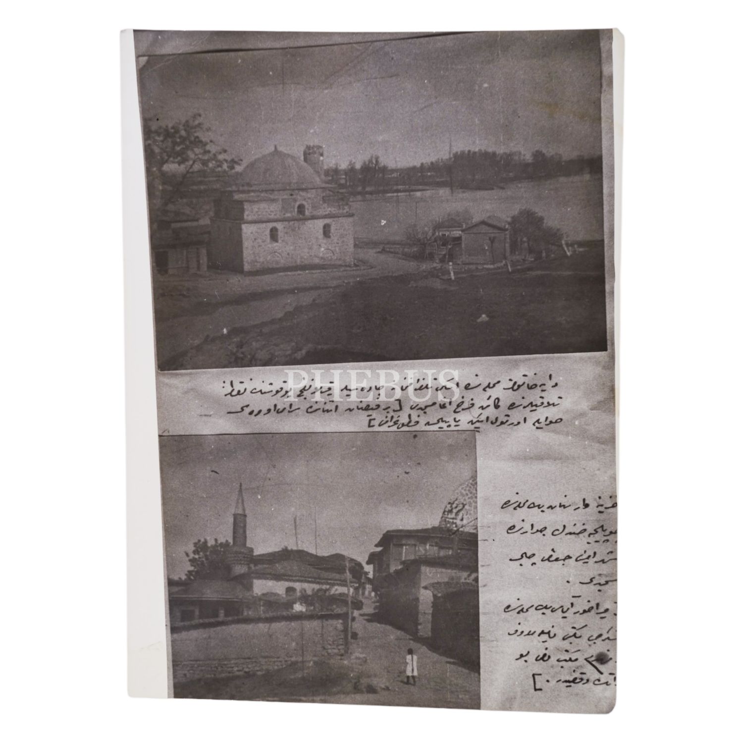Edirne, bir arşiv dosyasından çekilmiş iki mescit fotoğrafı: Ferruh Ağa Mescidi (üst resim) ve Şehremini Cafer Çelebi Mescidi, 13x18 cm...