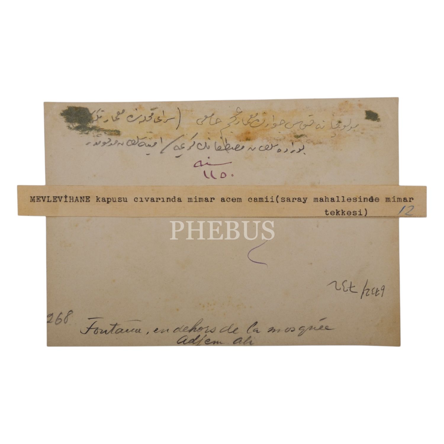 Arka yüzü el yazısı Osmanlıca ve Fransızca açıklamalı; matbu yeni harfli açıklama bantlı.