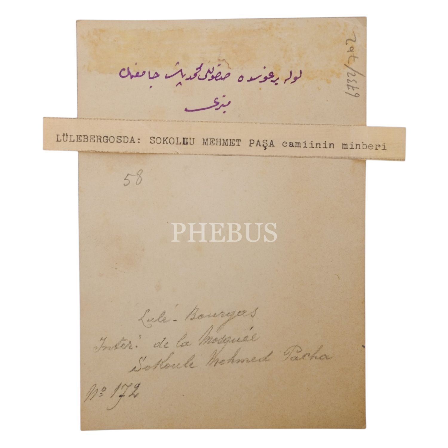 Arka yüzü el yazısı Osmanlıca ve Fransızca açıklamalı; matbu yeni harfli açıklama bantlı.