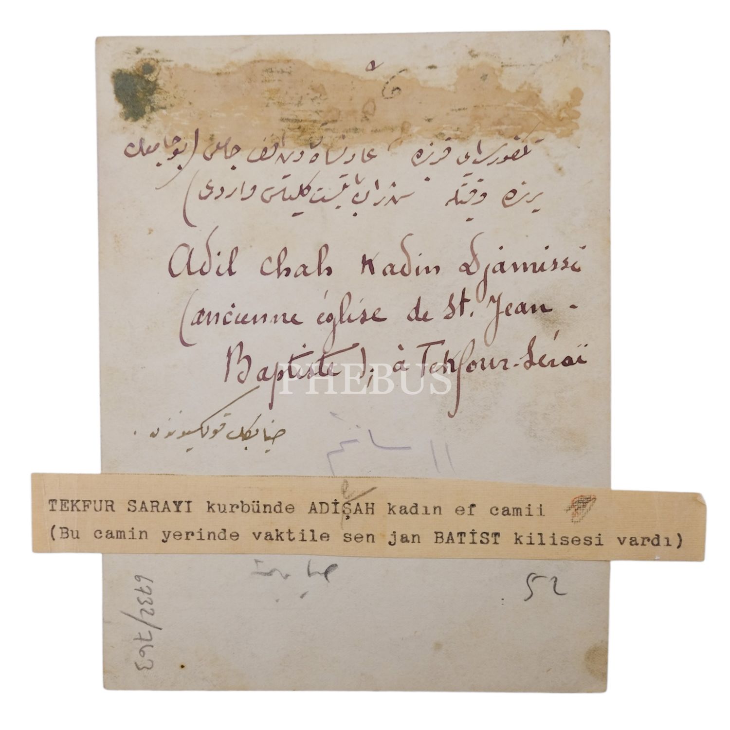 Arka yüzü el yazısı Osmanlıca ve Fransızca açıklamalı; matbu yeni harfli açıklama bantlı.