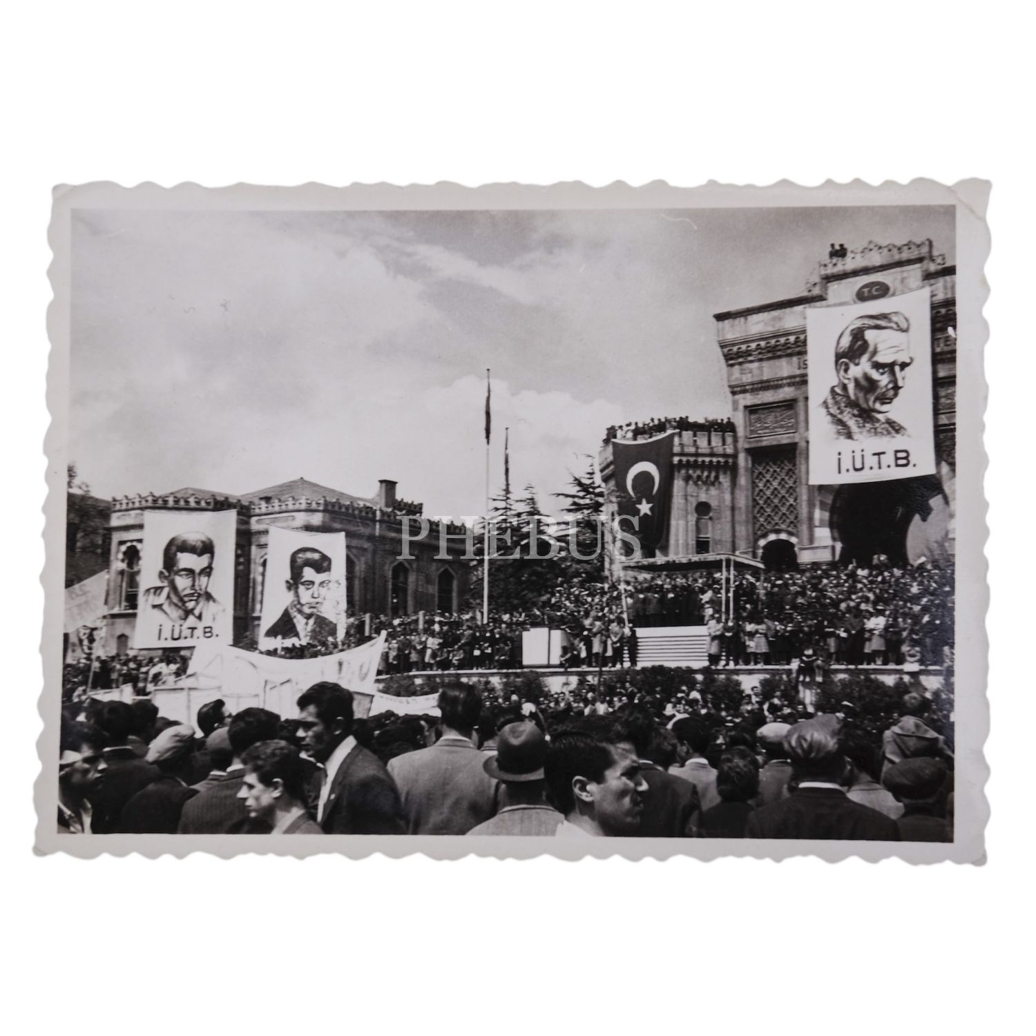 İstanbul Üniversitesi Talebe Birliği´nin İstanbul Üniversitesi kapısında düzenlediği bir miting, 10x7 cm...