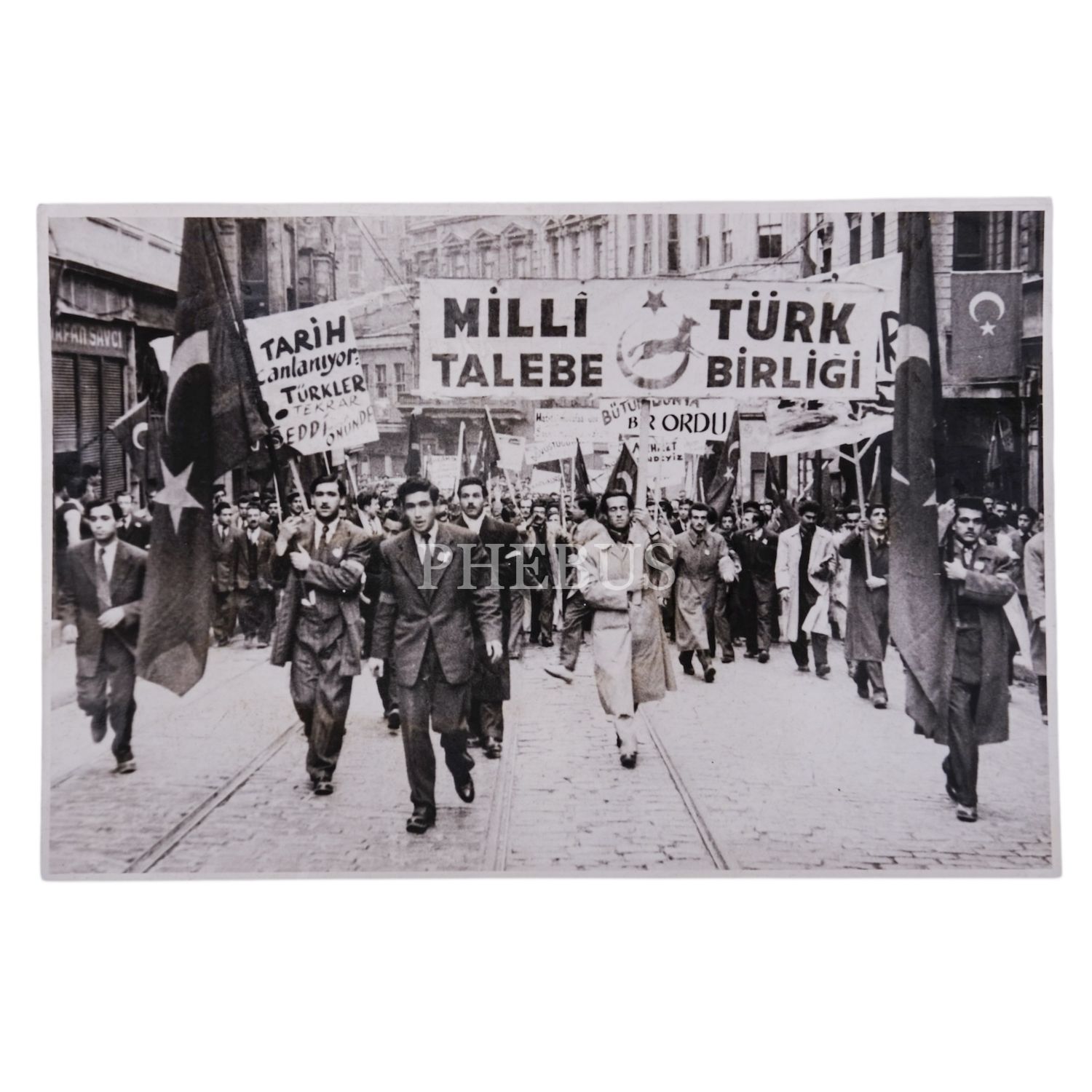 Millî Türk Talebe Birliği üyelerinin Kore Savaşı´nda (1950-1953) şehit düşen Türk askerleri için düzenlediği mitingten bir enstantane fotoğraf, 16x11 cm...