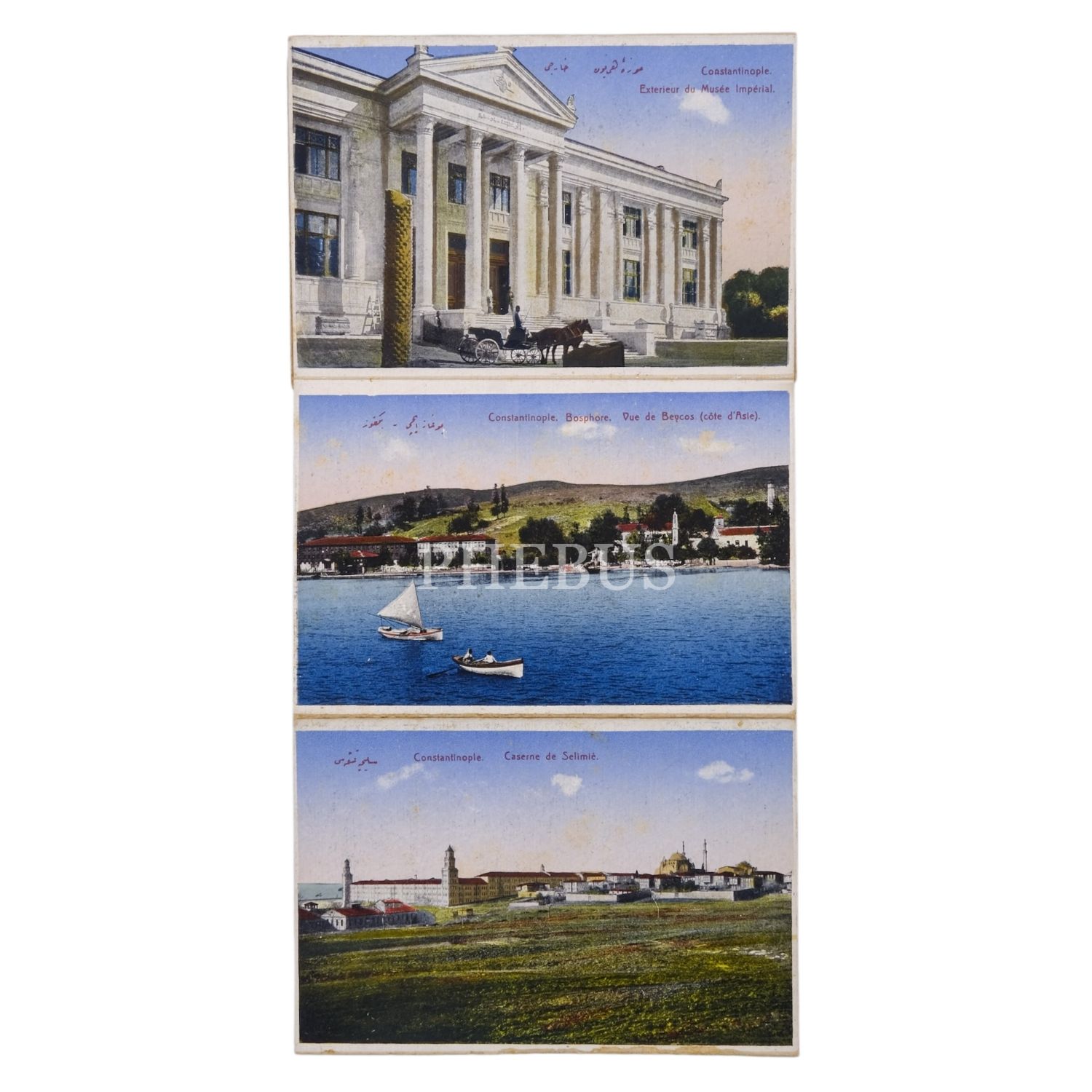 Akordeon formunda 12 adet Osmanlı İstanbul´u kartpostalından oluşan İstanbul Yadigarı (Souvenir de Constantinople) albümü, editör: M.J.C., 15x10 cm...