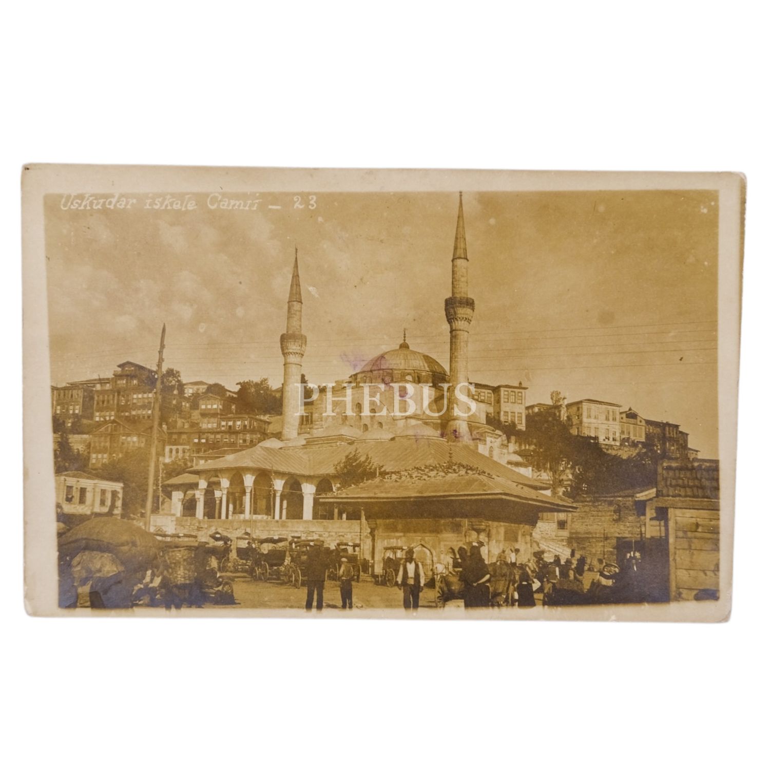 Çeşme önünde müşteri bekleyen faytoncular ve arabaları görülmektedir. Fotokartın arka yüzü iki kişi tarafından imzalanmıştır.