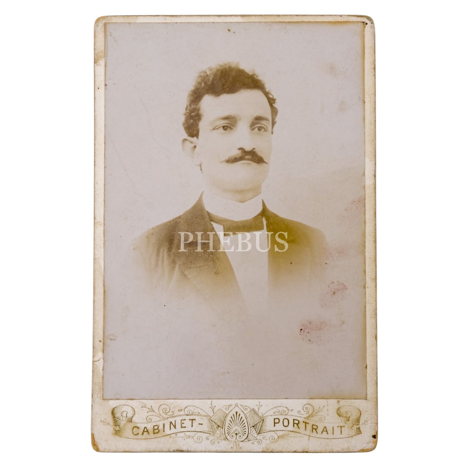 Amasya´da kendi adını taşıyan bir fotoğrafhane işleten ve çektiği fotoğraflardan günümüze pek azı ulaşan Ermeni fotoğrafçı Ghazaros Kayıyan´ın objektifinden, şık giyimli bir beyefendinin kabin fotoğrafı, arka yüzü dört dilde reklamlı, 11x17 cm...
