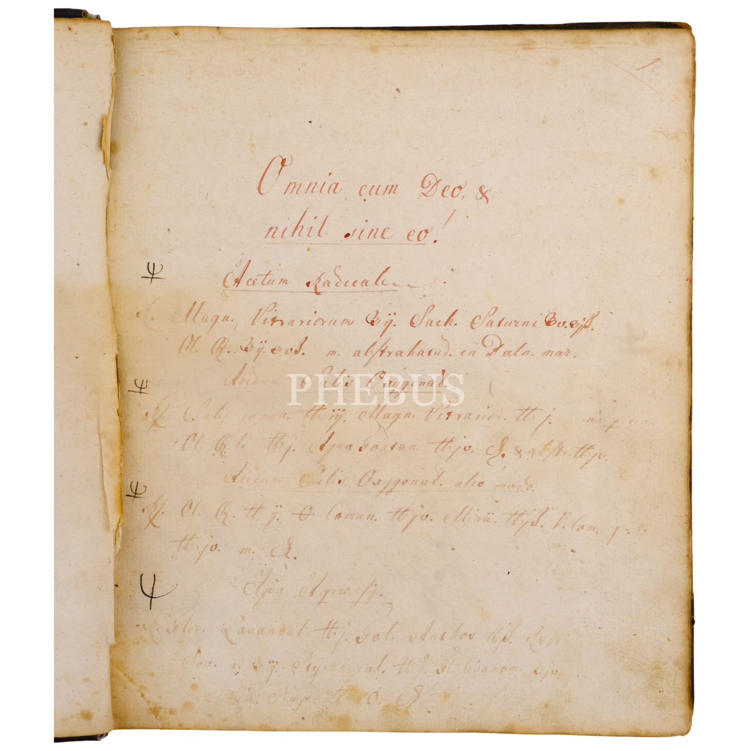 Simya formüllerinin ve ecza tarkiplerinin anlatıldığı Latince yazma defter.