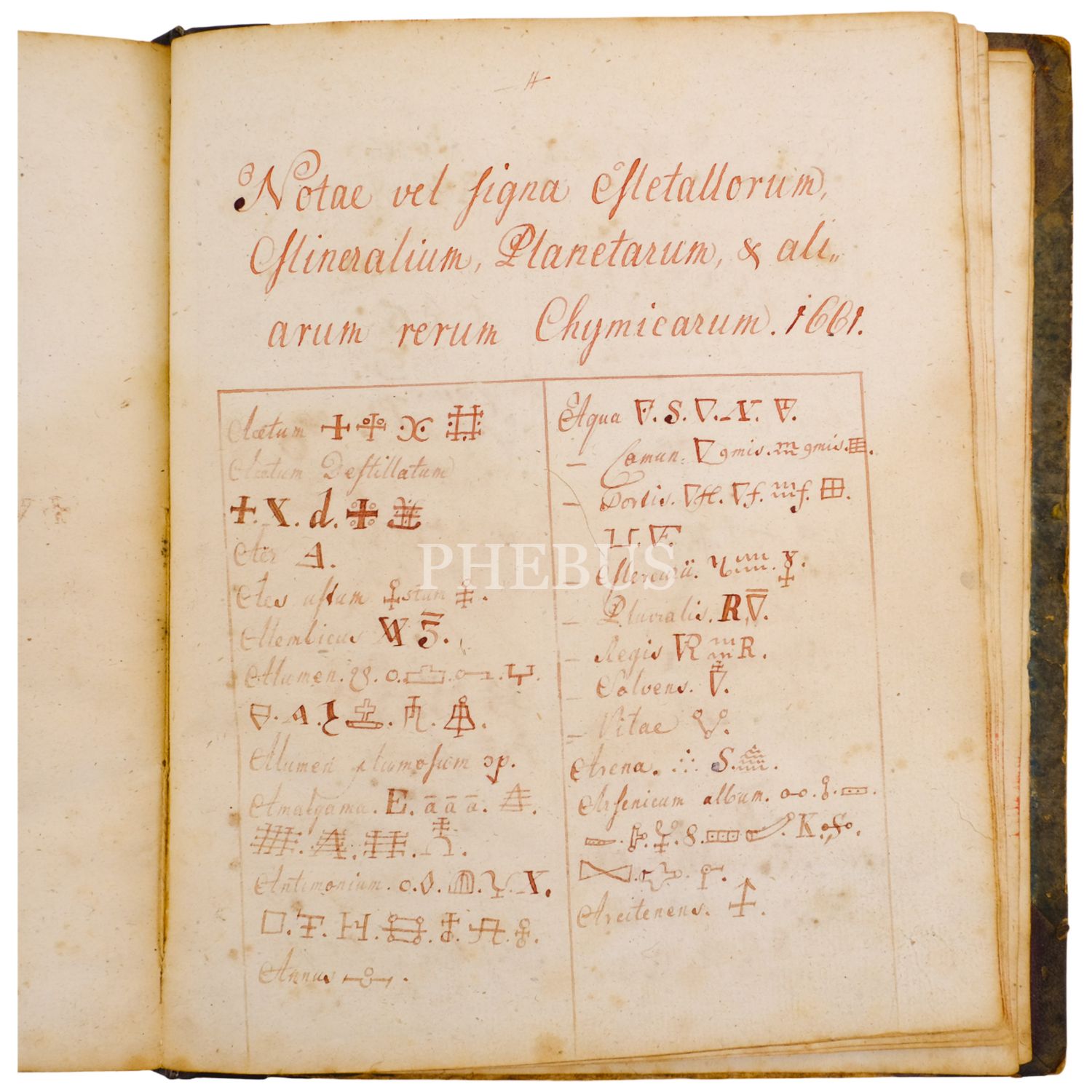 Son bölümdeki cetvellerin başlığında "minerallerin, gezegenlerin ve diğer kimyasal şeylerin etkilerine dair notlar veya işaretler, 1661" notu düşülmüştür.