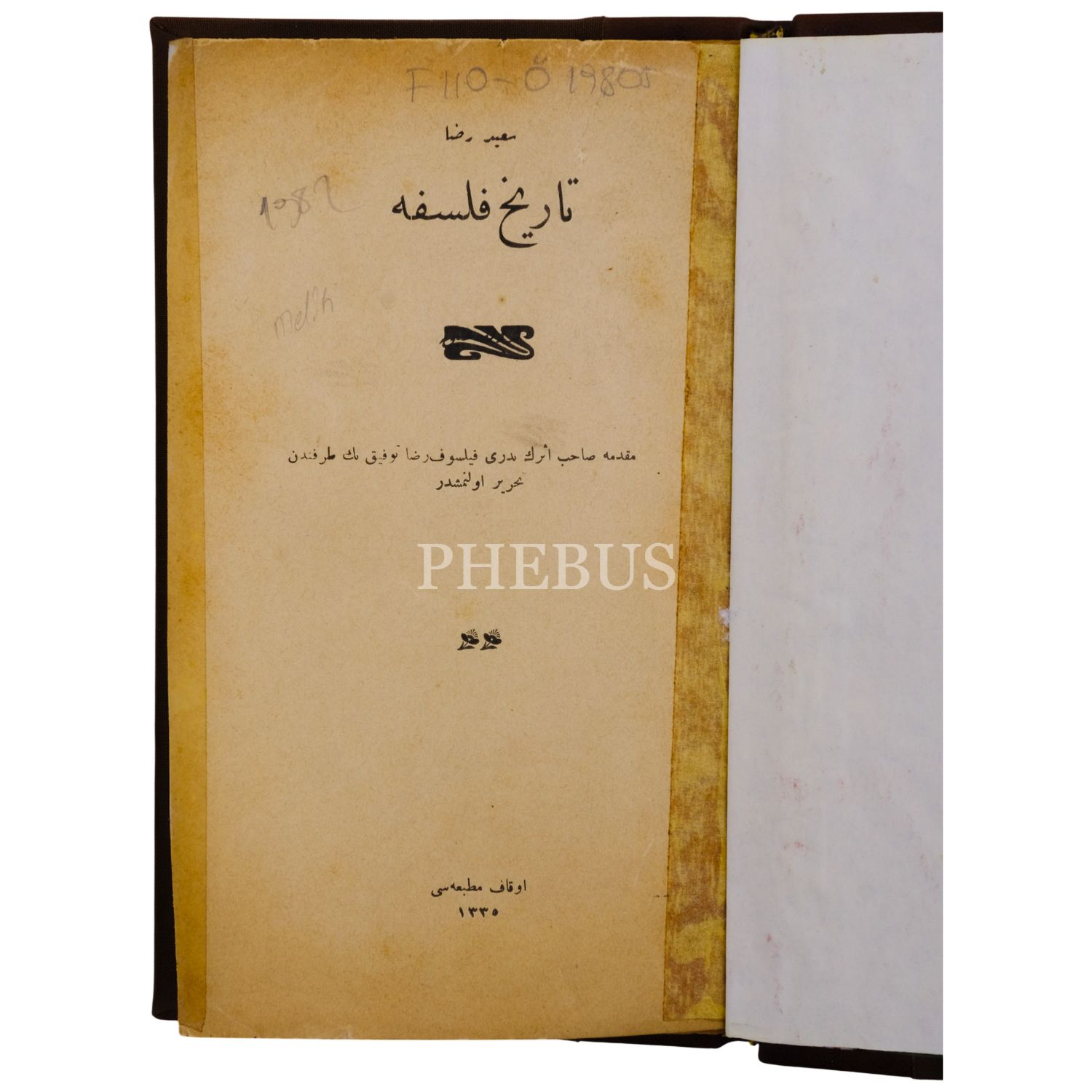 TARİH-İ FELSEFE, Sait Rıza, 1334, Evkaf-ı İslamiye Matbaası,70 sayfa, 13x22 cm...