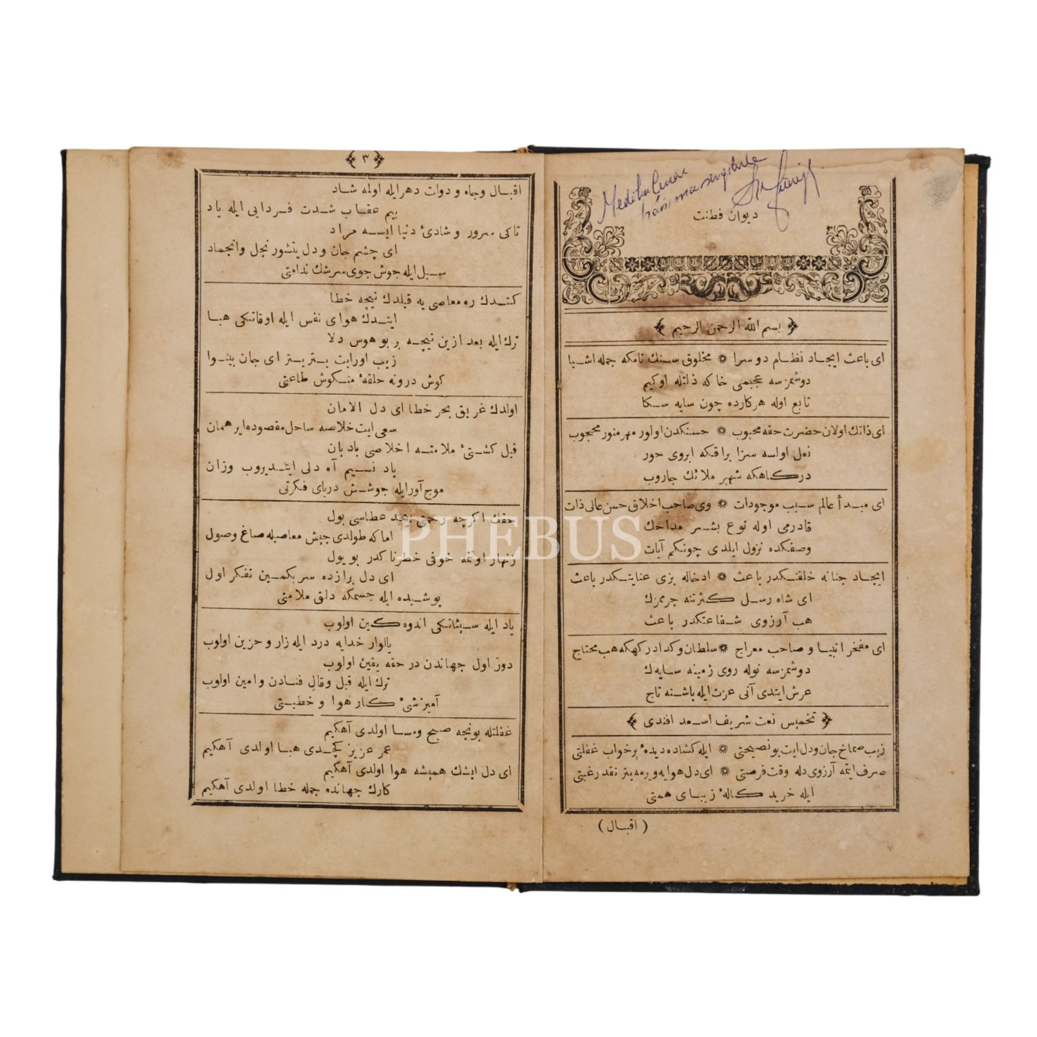 DİVAN-I FITNAT, Zübeyde Fıtnat, 1296, Tasvir-i Efkar Matbaası, 52+39 sayfa, 14x21 cm...