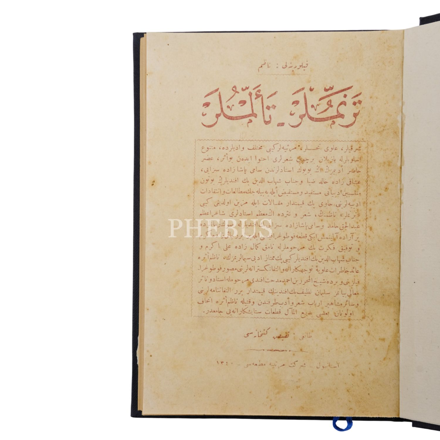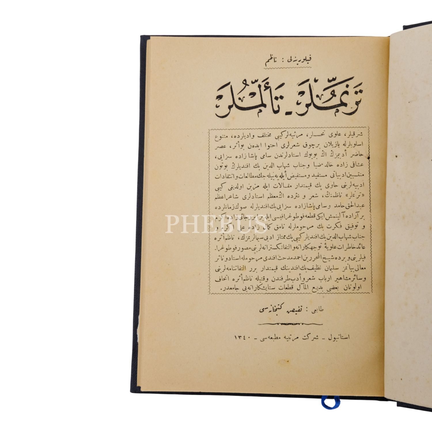 TERENNÜMLER - TEELLÜMLER, Filorinalı Nazım, 1340, Şirket-i Mürettibiye Matbaası, 223 sayfa, 14x20 cm...