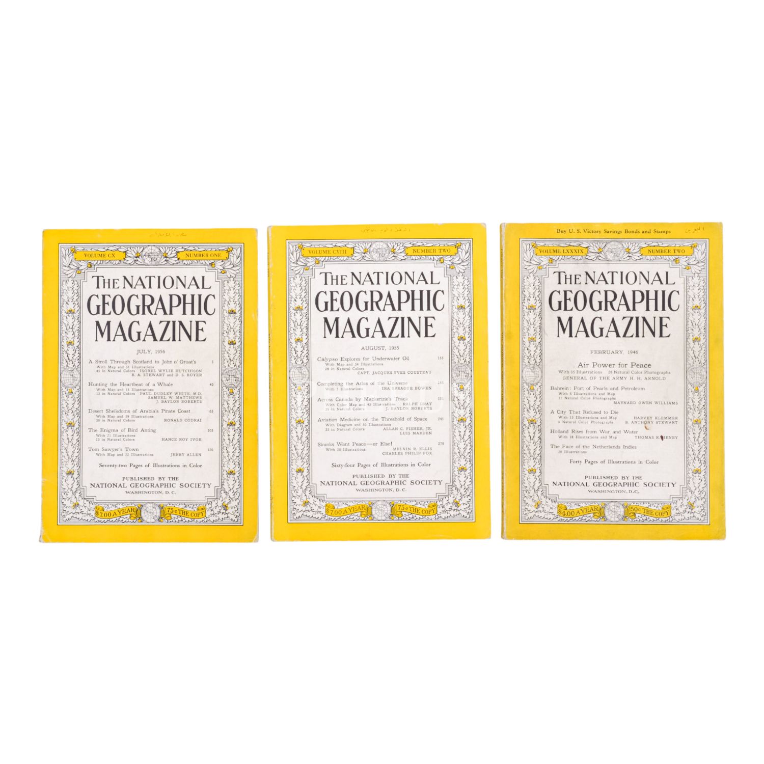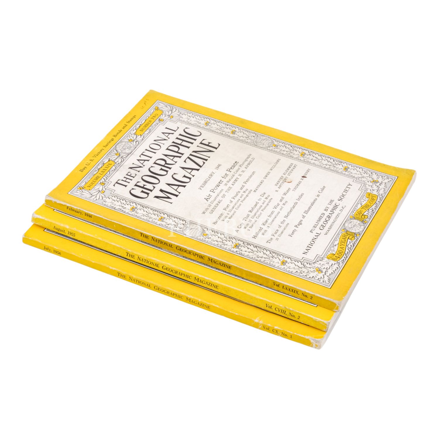THE NATIONAL GEOGRAPHIC MAGAZINE (3 sayı: February 1946, August 1955, July 1956), 18x26 cm...