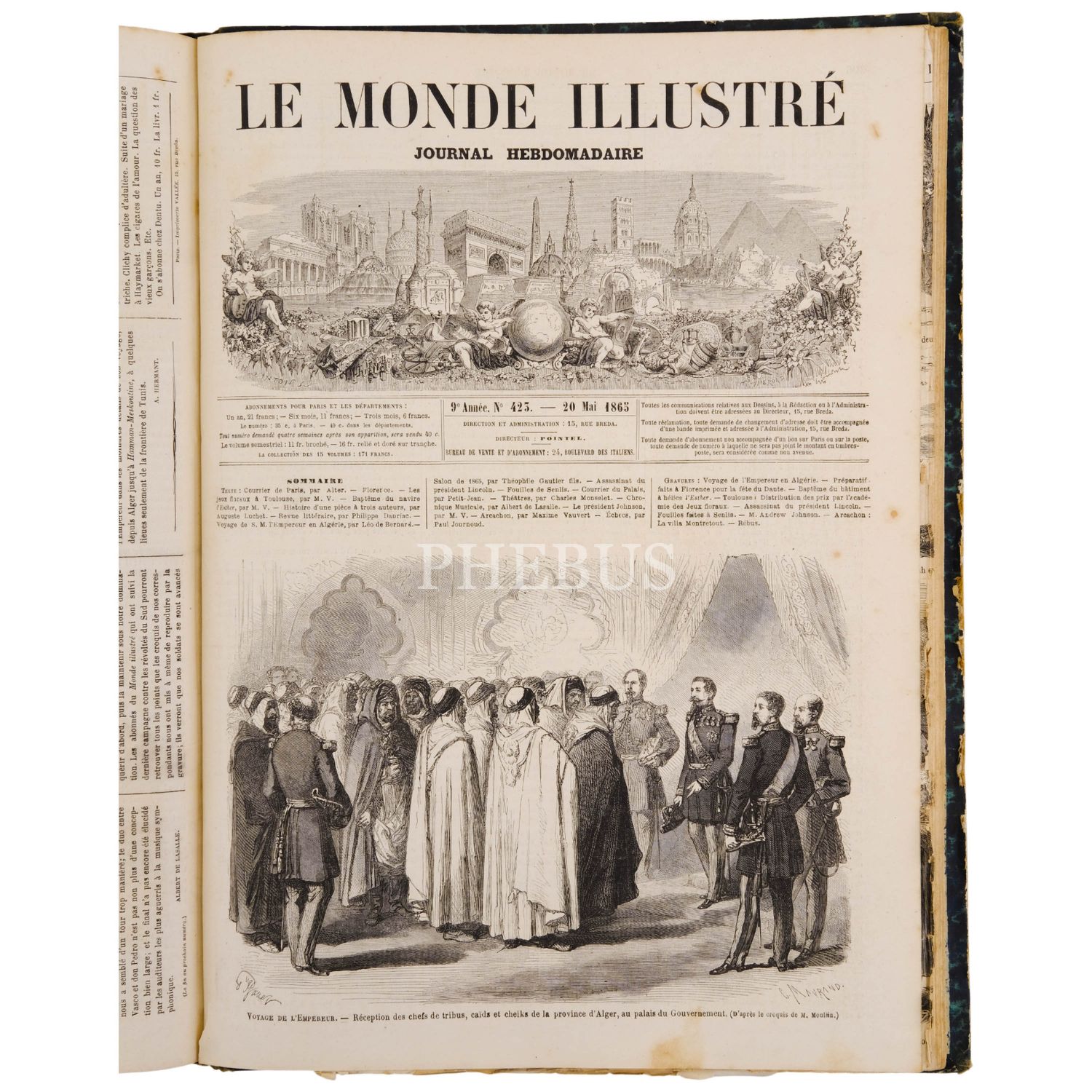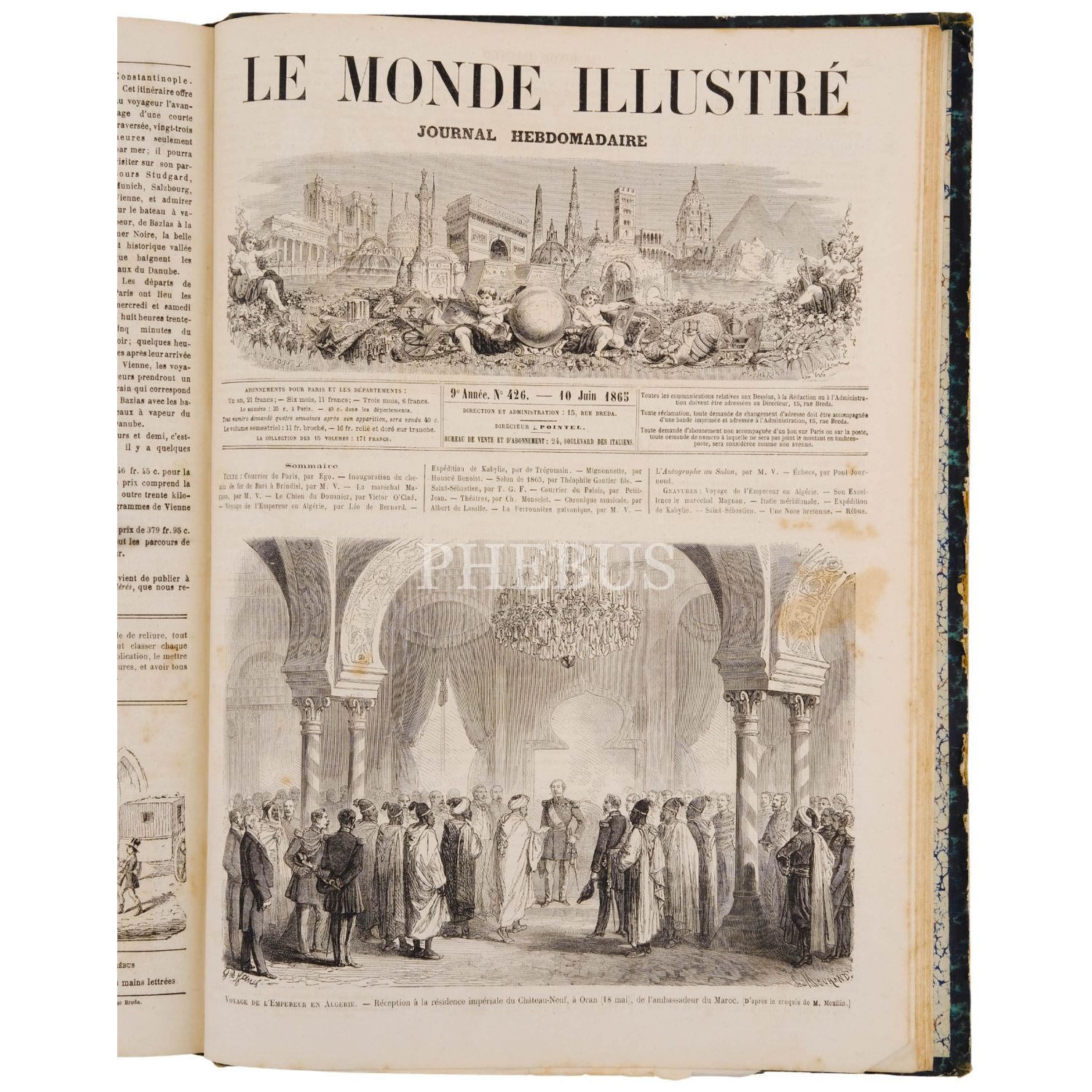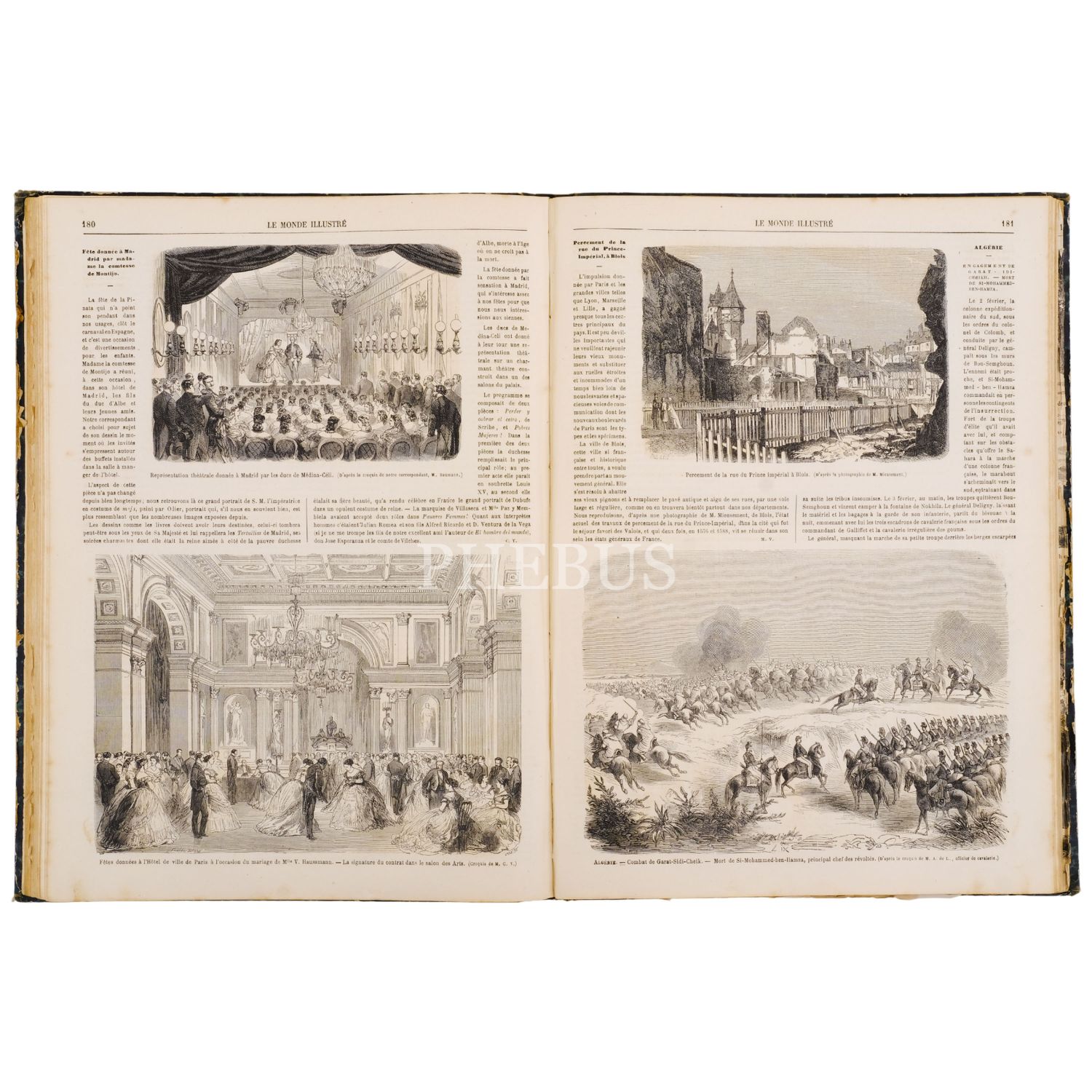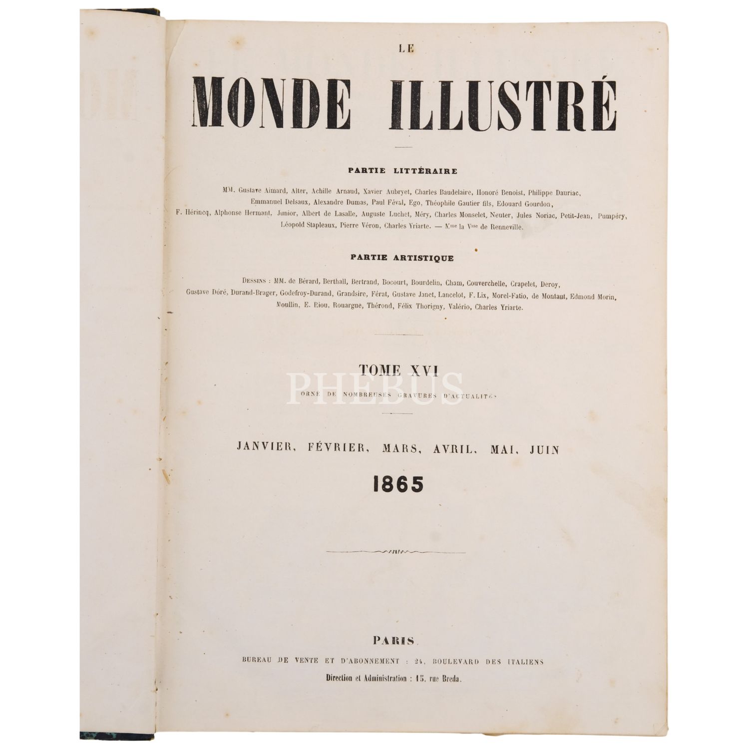 LE MONDE ILLUSTRE dergisinin, 1865 yılında yayımlanan aylık sayılarının tamamını içeren 16. cildi (iki kitap), içinde bazıları katlanır formda olmak üzere yüzlerce görsel yer almaktadır, 27x37 cm...