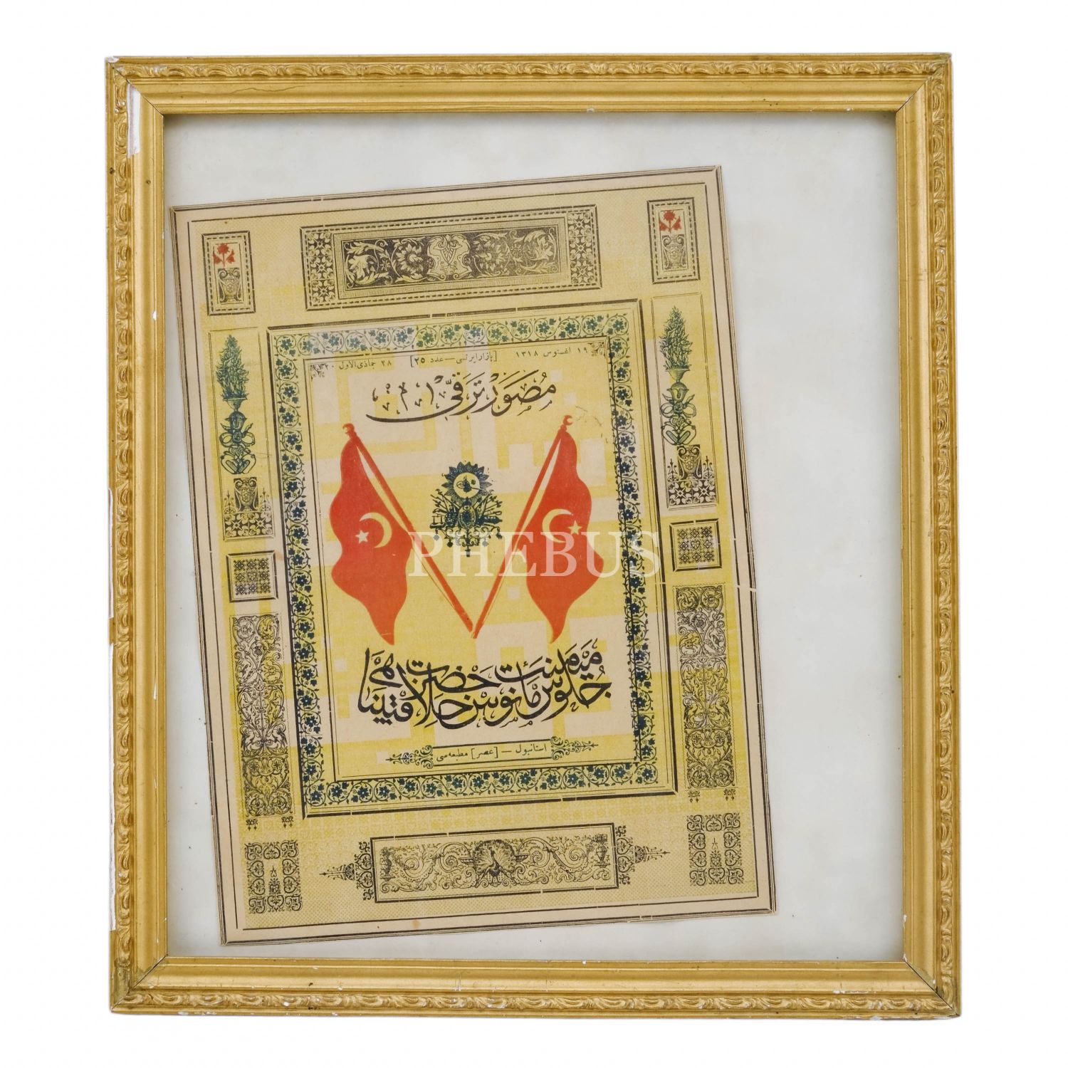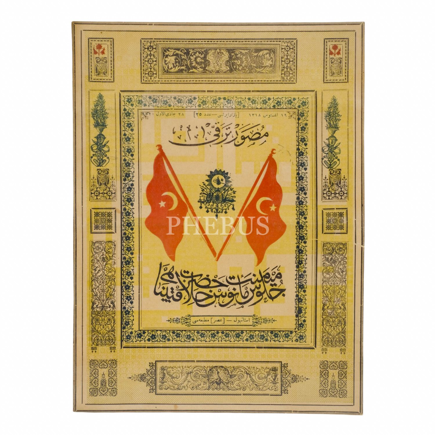 MUSAVVER TERAKKİ dergisinin 19 Ağustos 1318 tarihinde yayımlanan Cülüs-u Hümayun´a özel olarak yayımladığı sayısının kapağı, 21x28 cm...