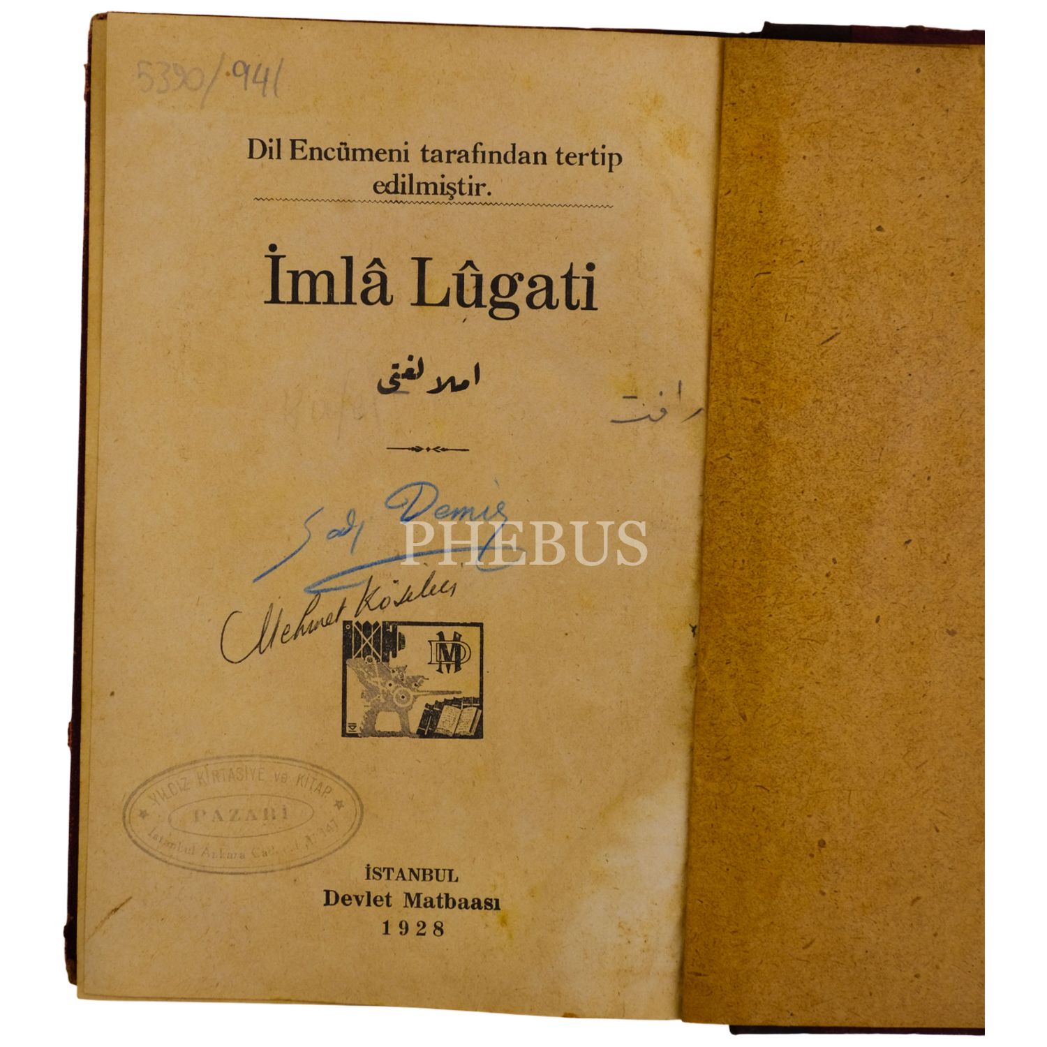 İMLÂ LÛGATİ (Dil Encümeni tarafından tertip edilmiştir), 1928, Devlet Matbaası, 371 sayfa, 15x21 cm..