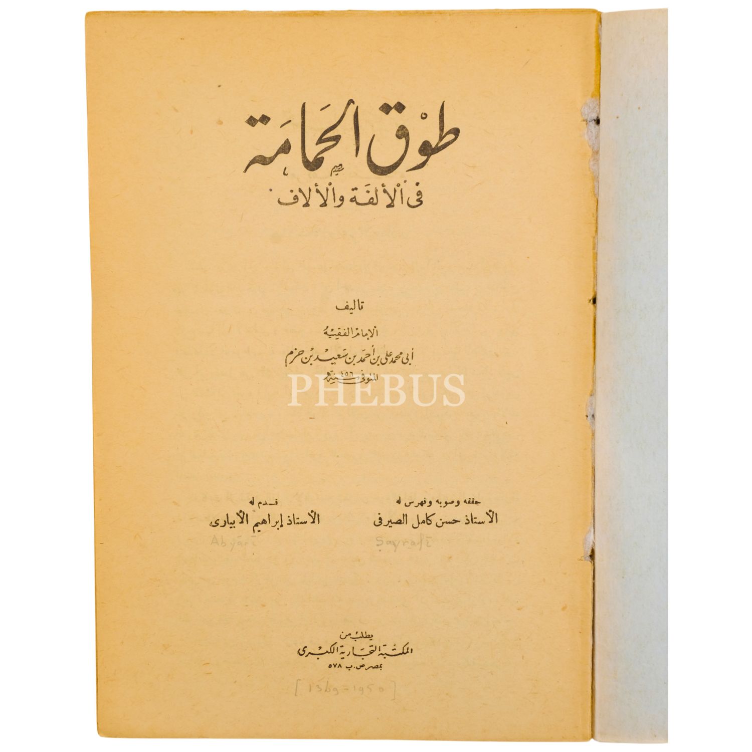 TAVKU´L-HAMÂME Fİ´L-ELFETİ VE´L-ÂLÂF, İbn Hazm, 1967, Mektebetü´l-Ticâriye, Mısır, 168 sayfa, 17x24 cm...