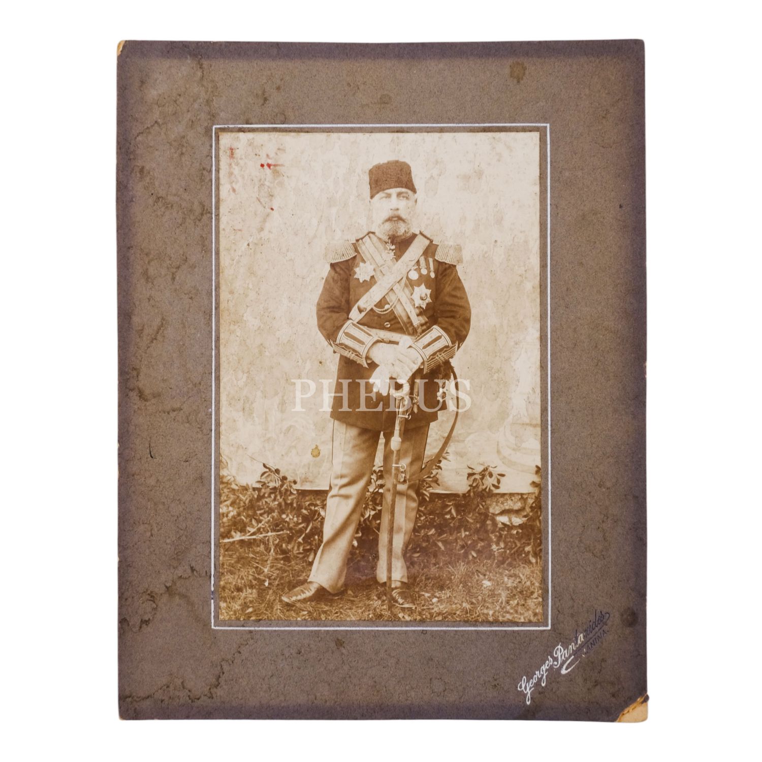 Bir Osmanlı paşasının stüdyo fotoğrafı, "Georges Pantazides - Janina (Polonya)", 14x9 cm...