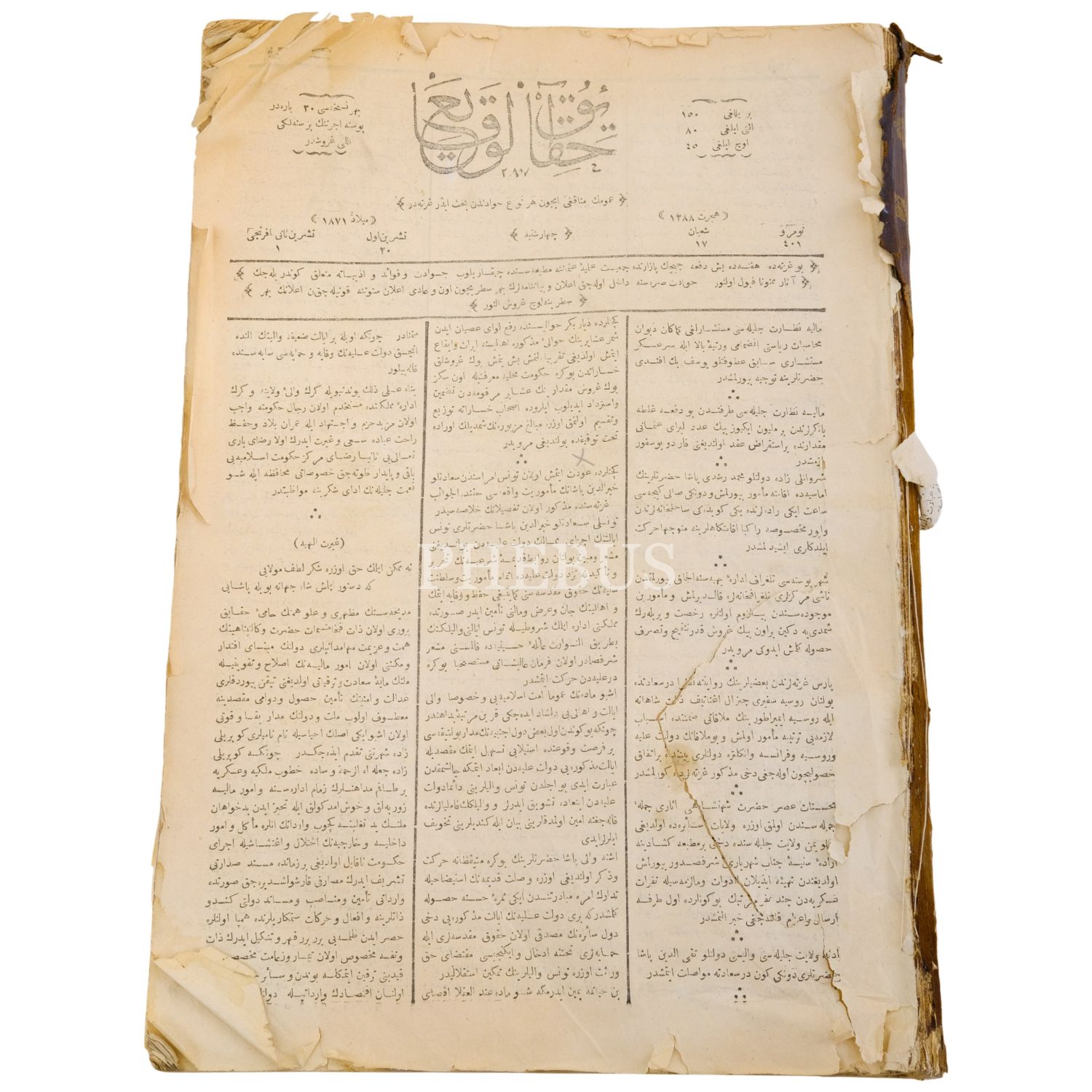 HAKAYIK´ÜL VEKAYİ gazetesinin 1871 ve 1872 yıllarında yayımlanan 401 ile 700 arası sayıları, 28x41 cm...