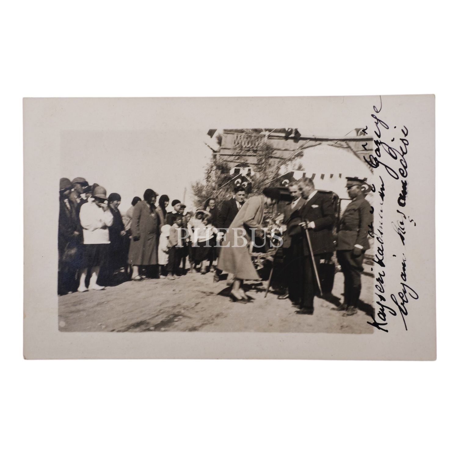 Mustafa Kemal Atatürk´ün Kayseri´ye teşrifi münasebetiyle kurulan tak önünde Gazi karşılanırken,14x9 cm...
