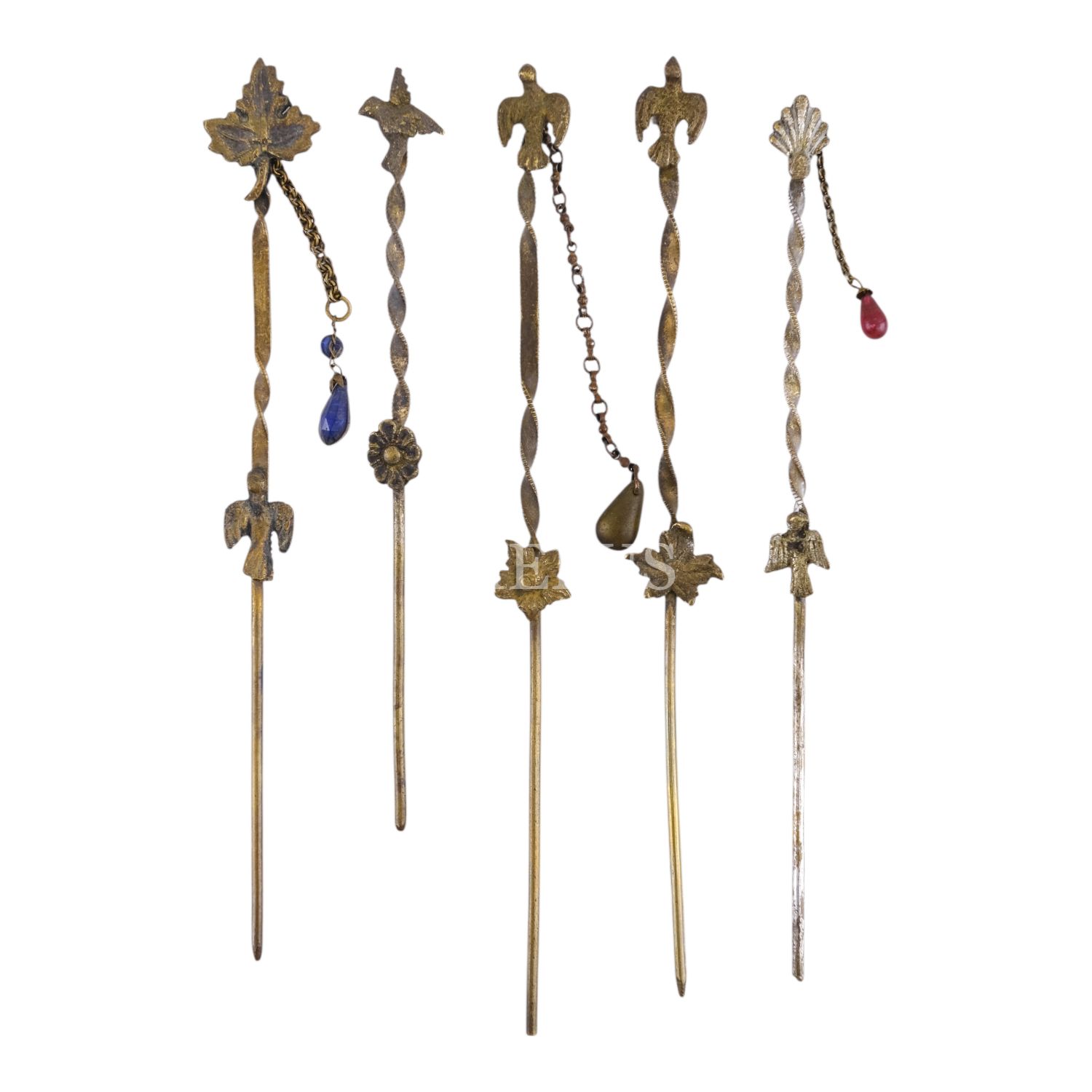 Biri gümüş diğerleri pirinç olmak üzere 5 adet geç dönem Osmanlı kur'an okuma çubuğu. Burgu saplı, gövde ve baş kısımlarında kuş ve çiçek motifleri bulunan, zincirli uçlarında yarı değerli taşlar barındıran, 16-17 cm boyutlarında toplam 66 gr. ağırlığında okuma çubukları.