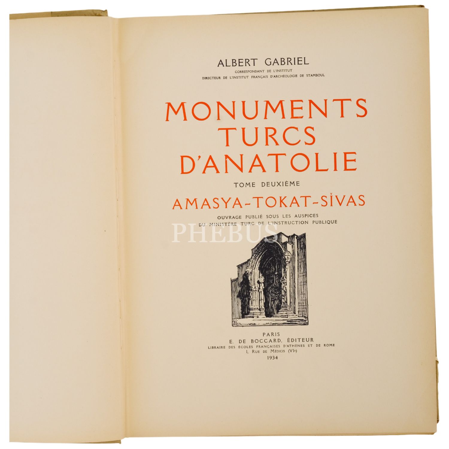 MONUMENTS TURCS D´ANATOLIE (2 cilt), Albert Gabriel, 1931, E. De Boccard (Paris), 365 sayfa+ 314 planş, 30x39 cm...