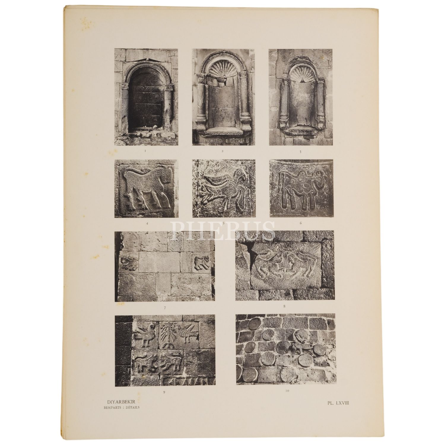 Türkiye´nin doğusunda Mardin, Diyarbakır, Malatya, Urfa gibi yörelerde arkeolojik çalışmalar yürüten, mimar ve sanat tarihçisi Albert Gabriel´in 2 cilt halinde yayımladığı 110 adet planşta verilen yüzlerce fotoğraf ve arkeolojik yapıların rölövelerine yer verdiği eseri...