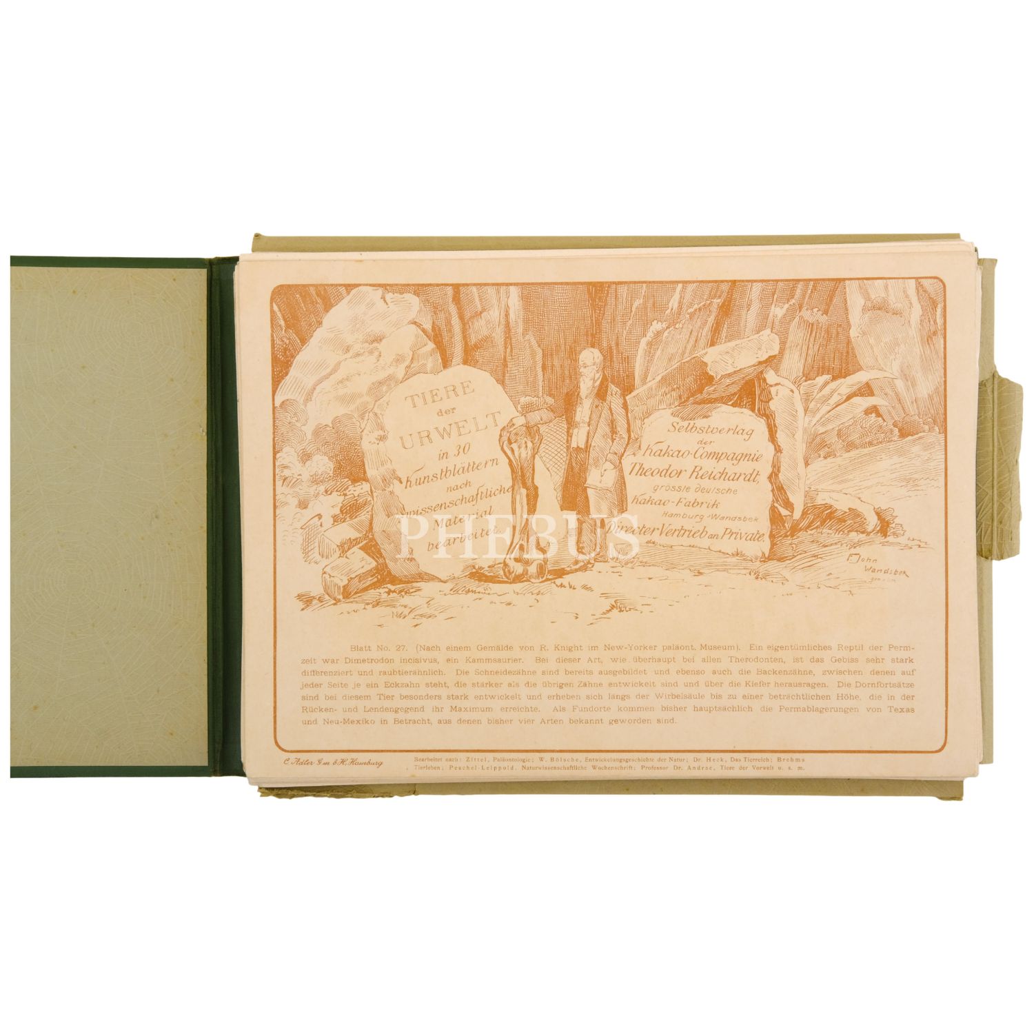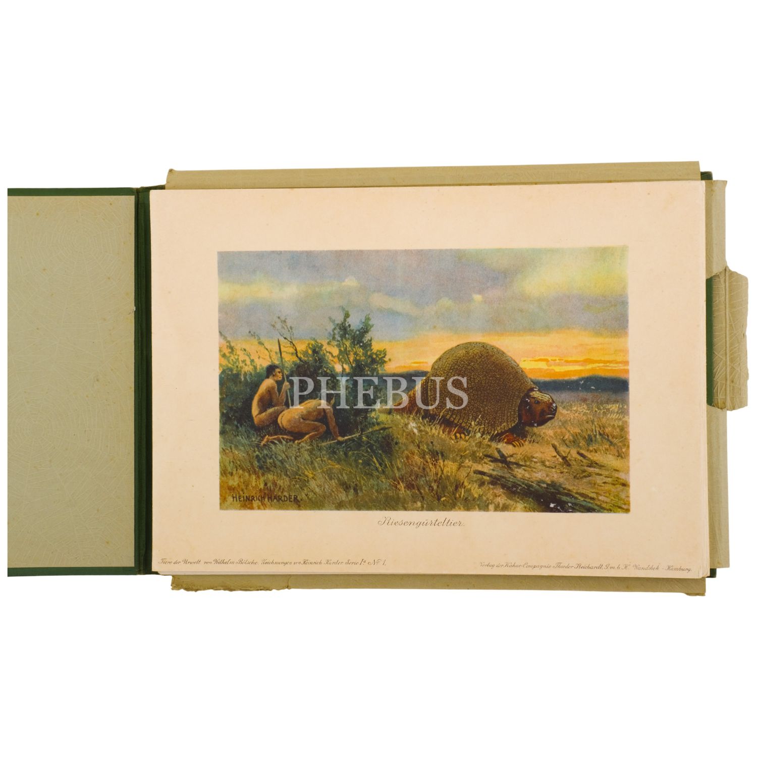 Tiere der Urwelt kartları, 20. yüzyıl başlarında Hamburg’daki önde gelen çikolata üreticilerinden Theodore Reichardt tarafından yayımlanmış ve geniş kitlelere ulaşmış koleksiyonluk serilerdir. Dönemin popüler promosyon ürünleri arasında yer alan bu kartlar, bugün hem erken ticari görsel kültürün hem de “prehistorik” temsillerin önemli örnekleri olarak değerlidir; tam takımına ulaşmak ise dolaşımdaki sınırlı sayı nedeniyle oldukça güçtür. Heinrich Harder’ın kartlar için hazırladığı resimler, o yılların sömürgeci bakış açısını yansıtan bir “ilksel dünya” kurgusu sunar. Sanatçı ile Wilhelm Bölsche’nin metinleri birlikte, dönemin yaygın bir eğilimi olarak Darwinizm’i sömürgeciliği meşrulaştıran bir ideolojik çerçeveye dönüştürmüş; bu nedenle kartlar bugün yalnızca estetik veya bilimsel ilgileriyle değil, aynı zamanda erken 20. yüzyıl görsel kültüründe sömürgecilik ve propaganda ilişkilerini anlamak açısından da önem taşımaktadır.