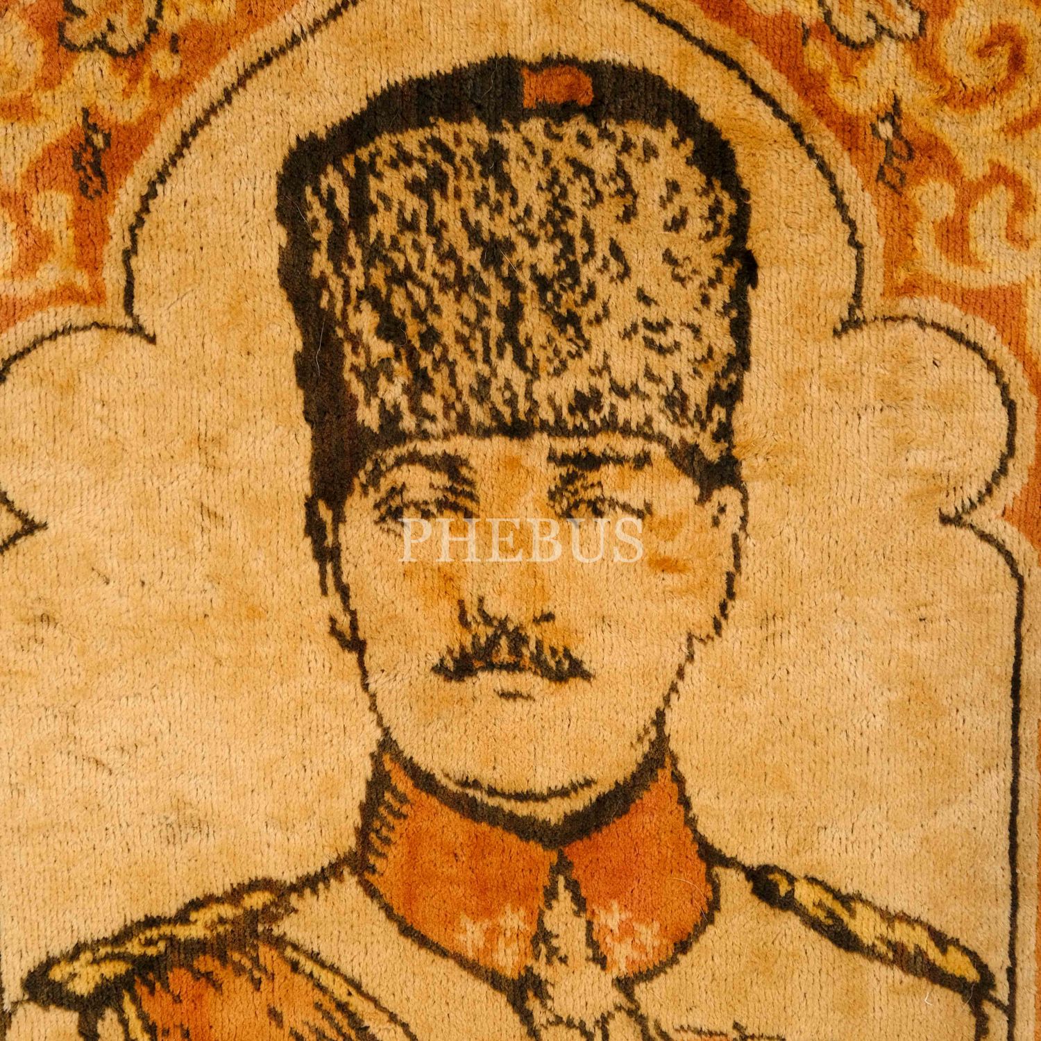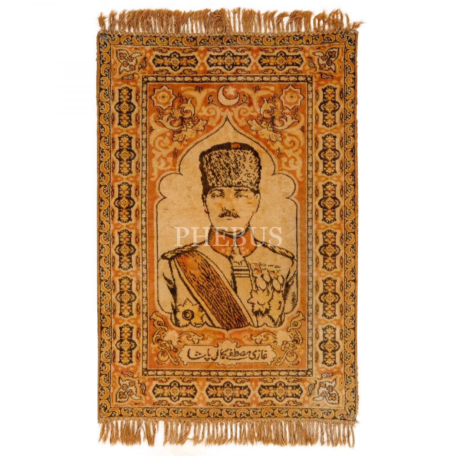 Mustafa Kemal Atatürk´ün üniformasıyla tasvir edildiği ve "Gazi Mustafa Kemal Paşa" yazısı işlenmiş duvar halısı, 61x110 cm...