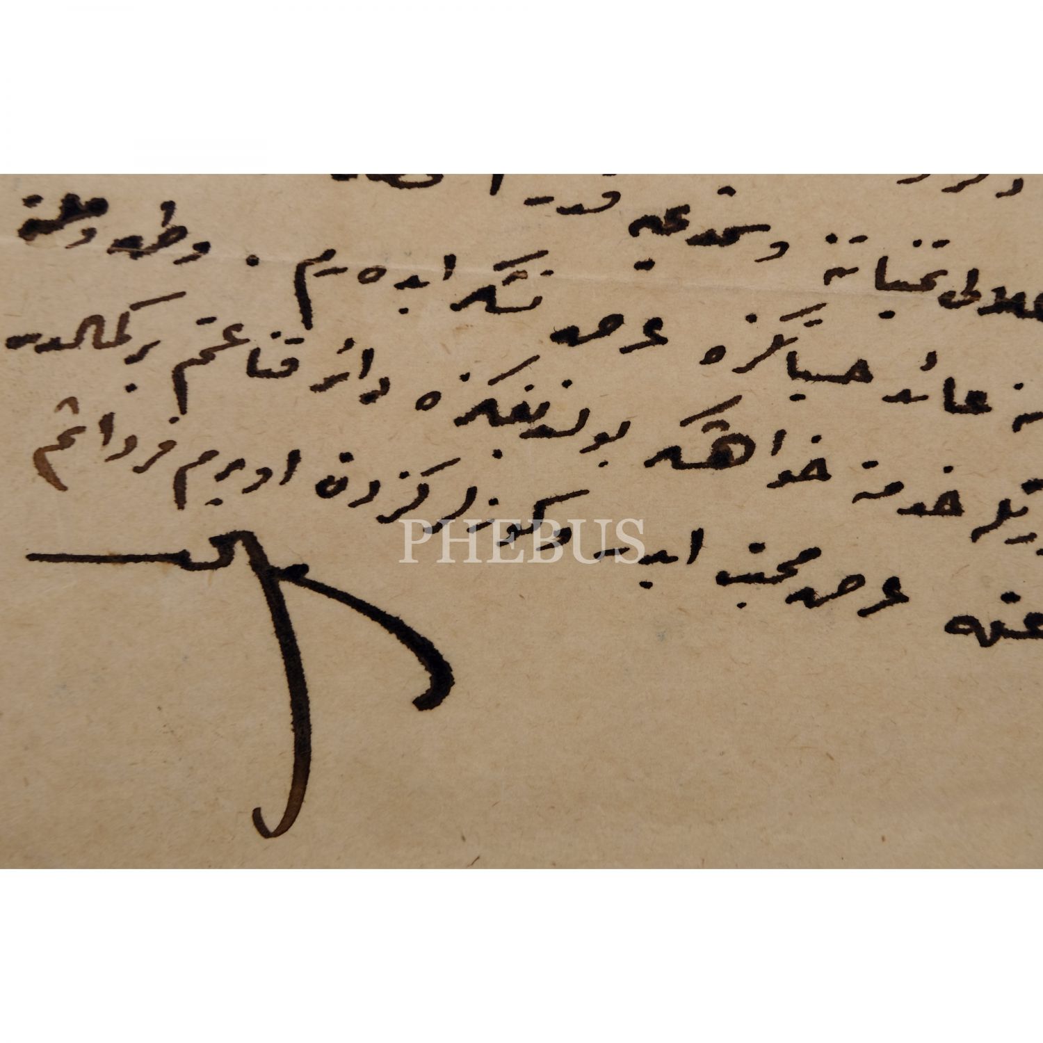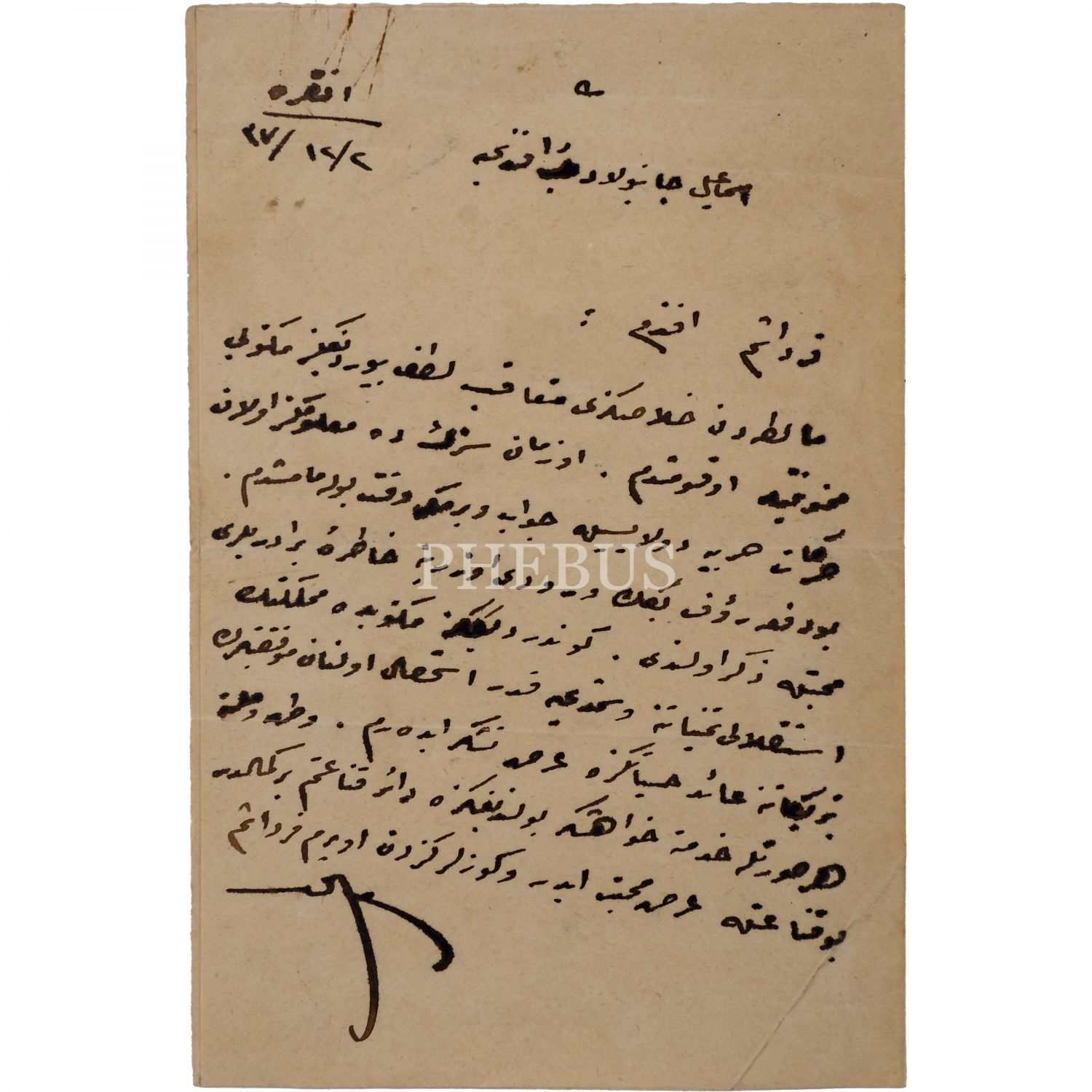 Mustafa Kemal Atatürk´ün, İzmir Suikasti´nin ardından tutuklanarak idam edilen İsmail Canbulat´a hitaben el yazısıyla kaleme alıp imzaladığı mektubu, 1337 (1921), 14x21 cm...