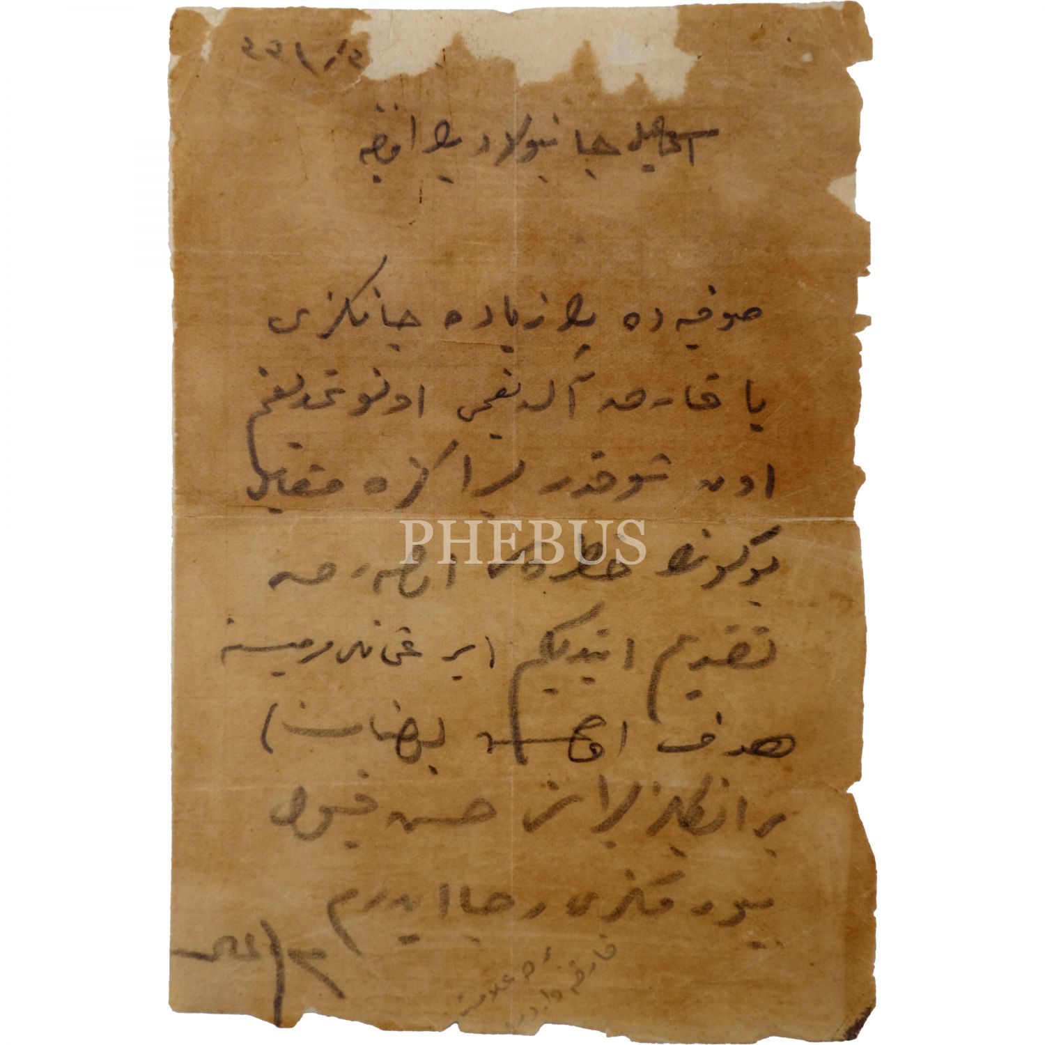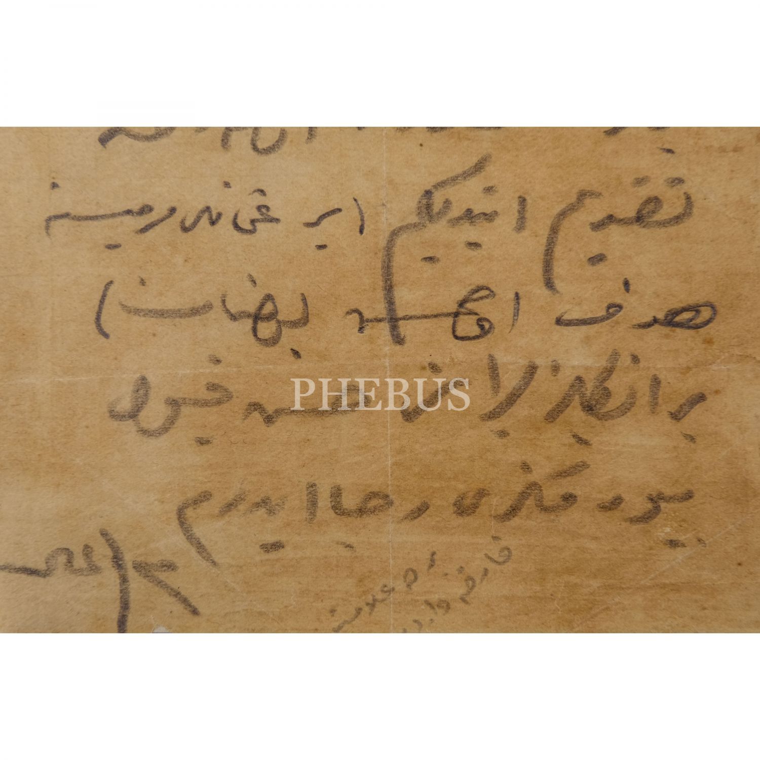 Mustafa Kemal Atatürk´ün, İzmir Suikasti´nin ardından tutuklanarak idam edilen İsmail Canbulat´a hitaben el yazısıyla kaleme alıp imzaladığı mektubu, 1333 (1917), 10x15 cm...