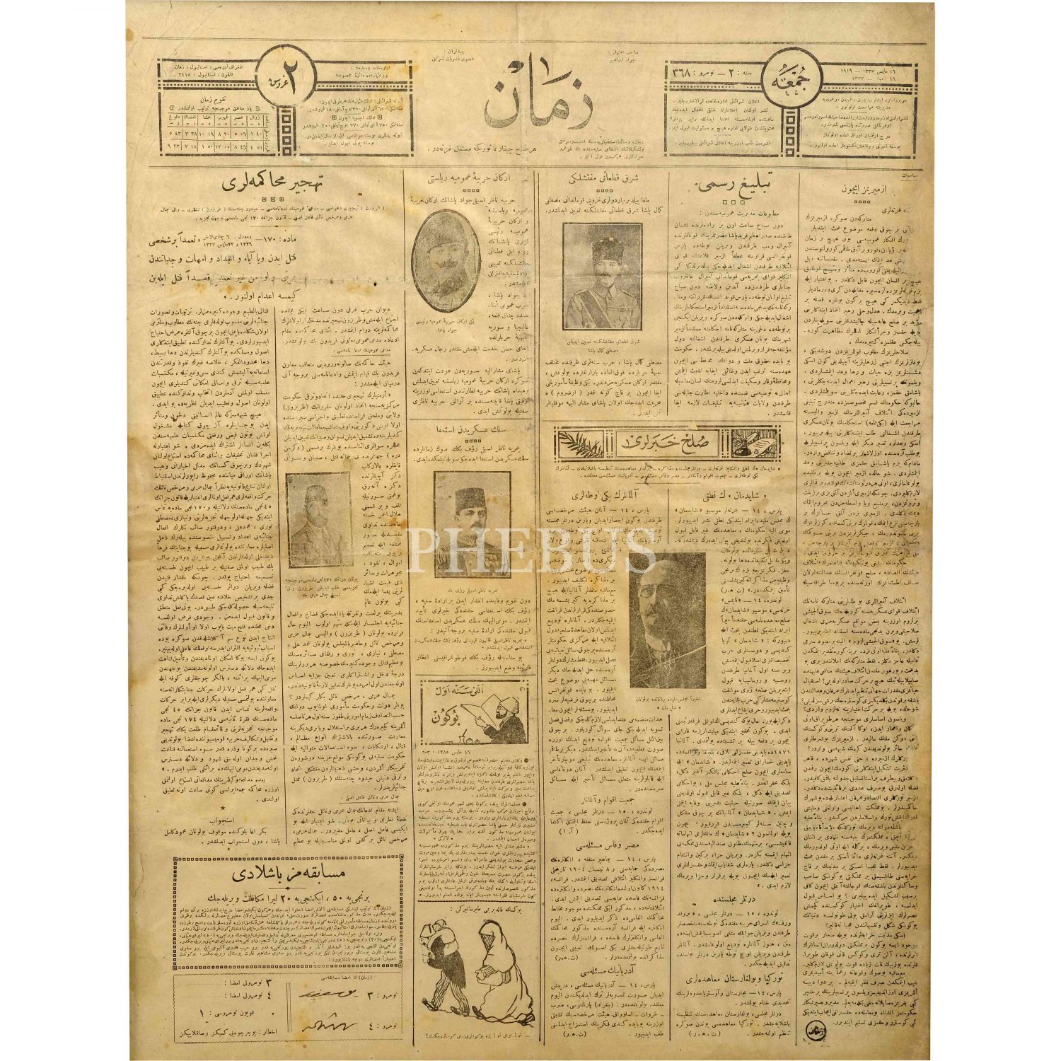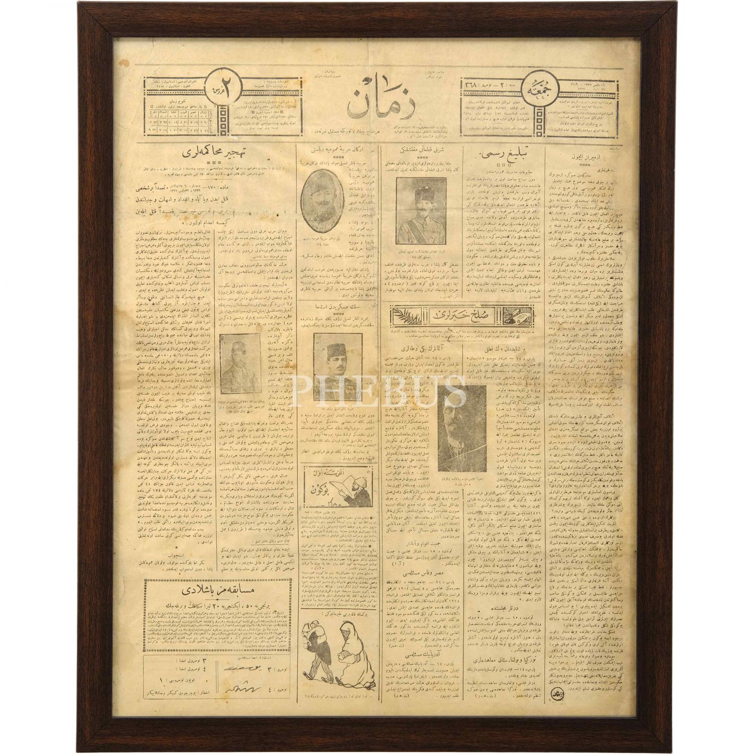 Mustafa Kemal Atatürk'ün Şark Kıtaatı Müfettişliğine (9. Ordu Müfettişi) tayin edildiğini konu alan Zaman gazetesinin 16 Mayıs 1919 tarihli sayısının kapağı, 43x56 cm...