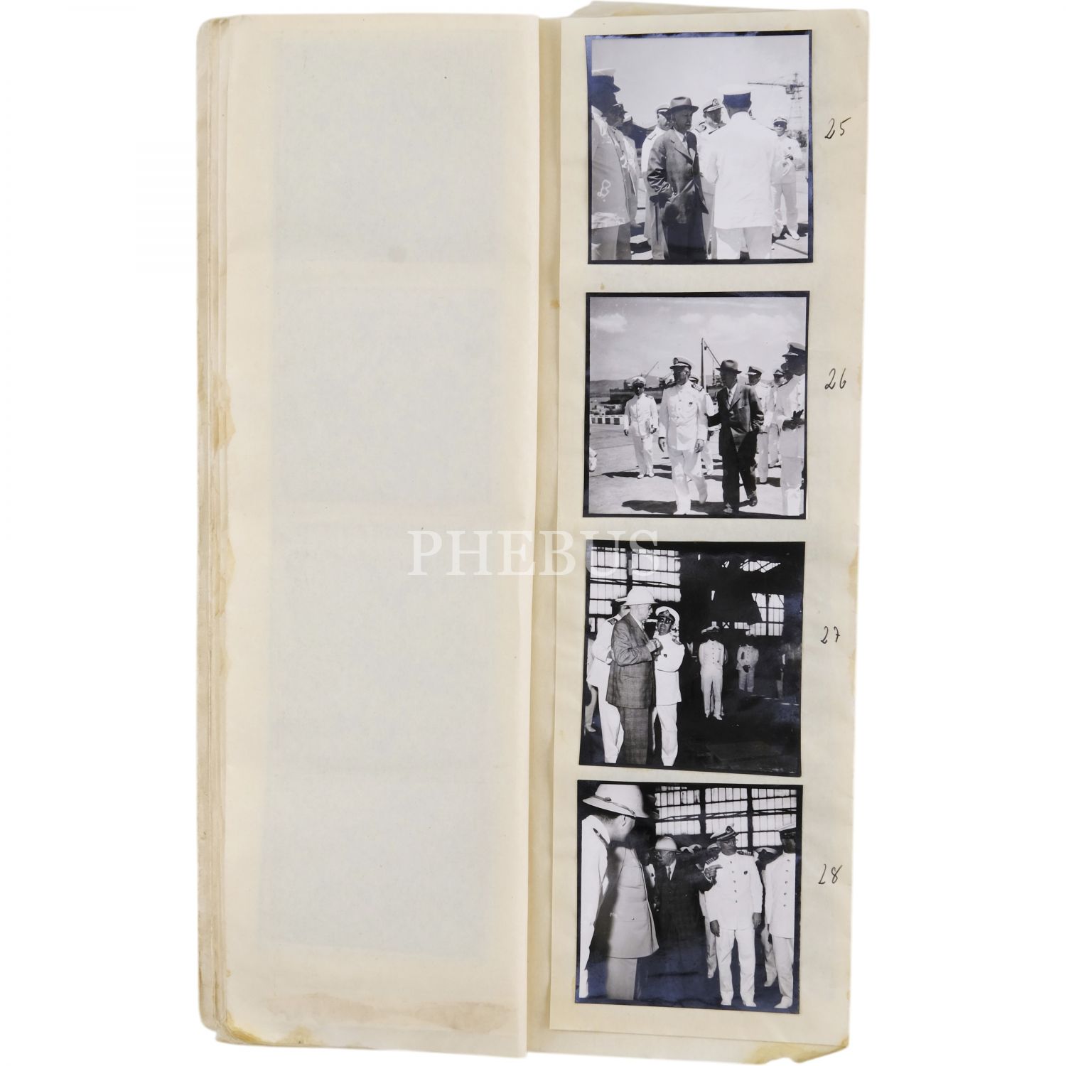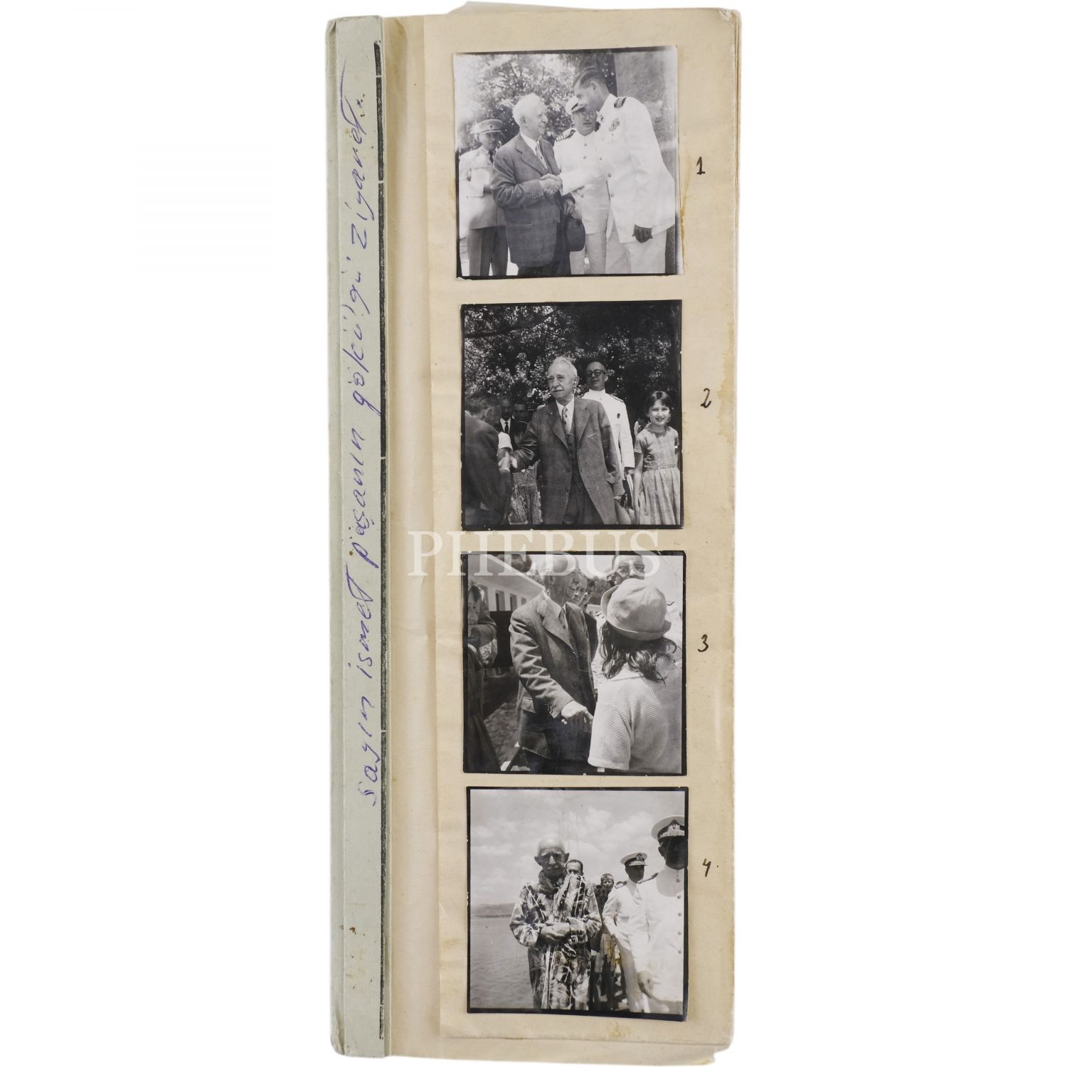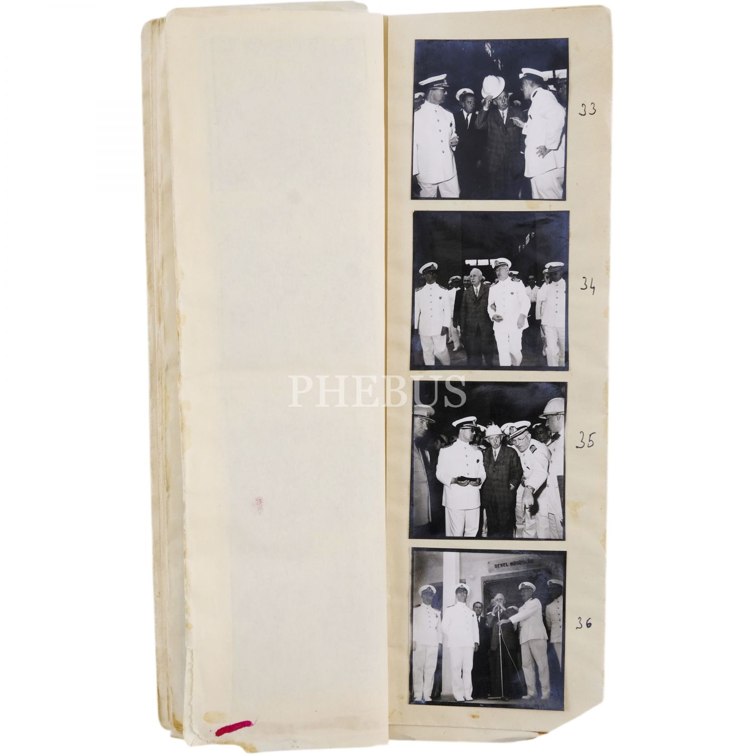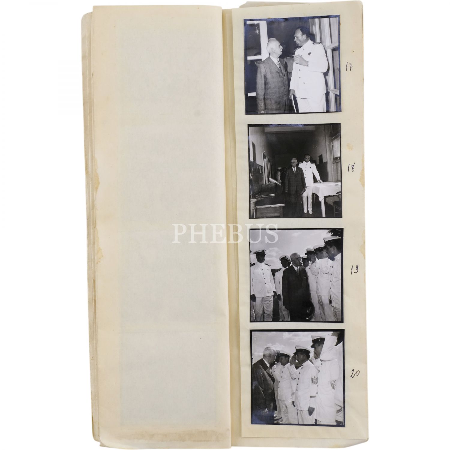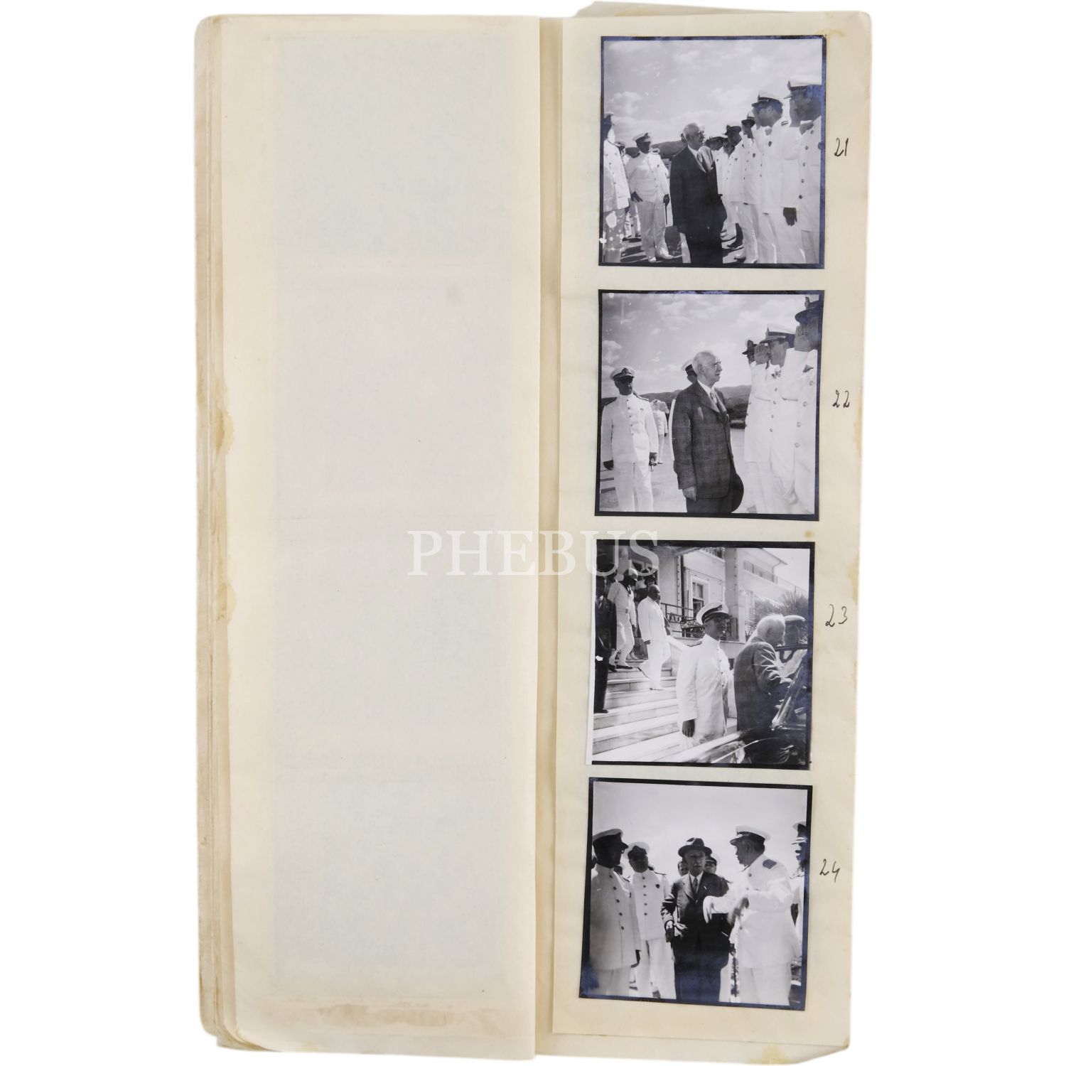 Fotoğraflar arasında, denize girmeyi çok seven İsmet İnönü´nün, Heybeliada halkının yakından çokça gördüğü ikonik mayosu ile denize girdiği ve halkla birlikte yüzdüğü kareler de yer almaktadır. Bunun dışındaki fotoğraflar, İnönü´nün amiraller eşliğinde Gölcük Deniz Ana Üssü´nü denetlemesini belgelemektedir. Albüm boyutu 11x28 cm...
