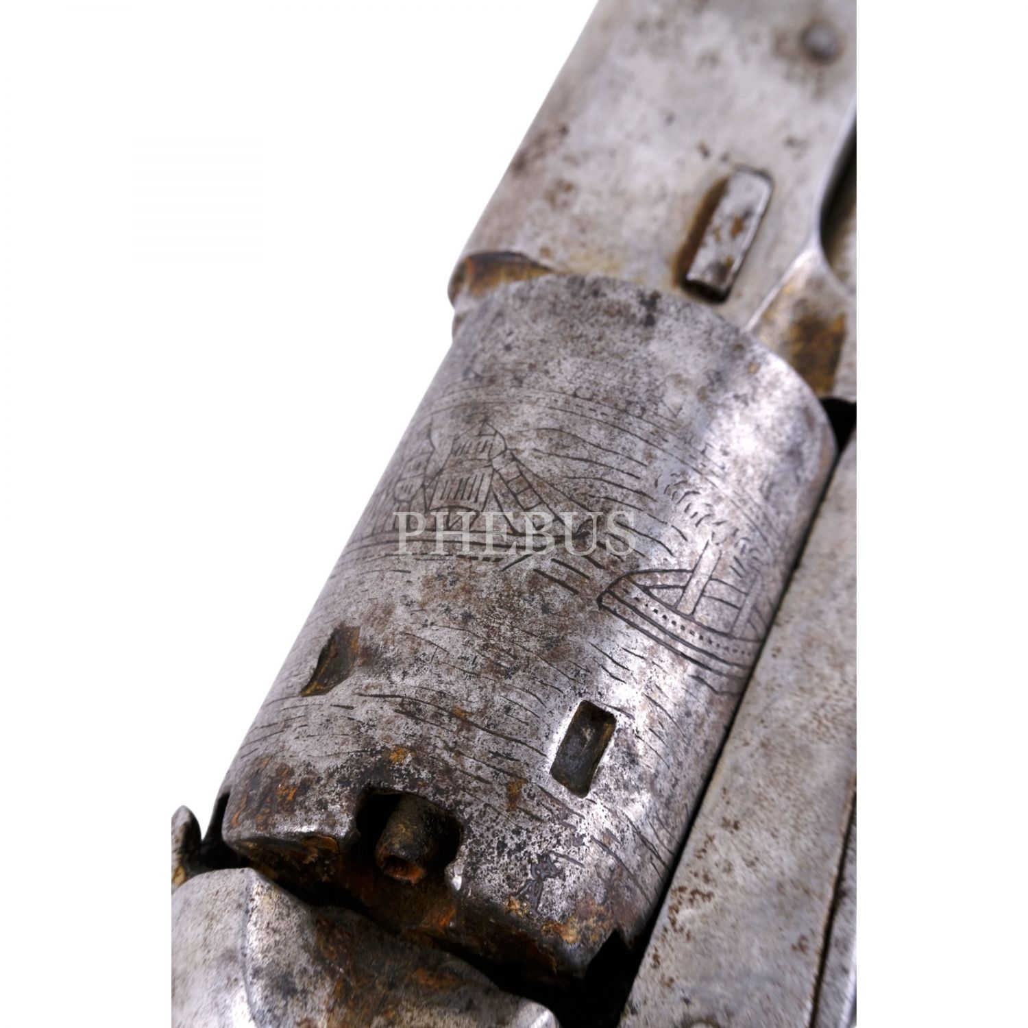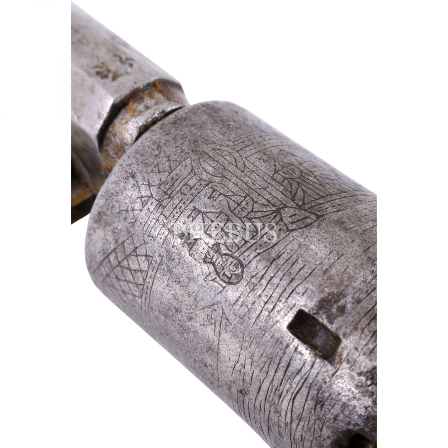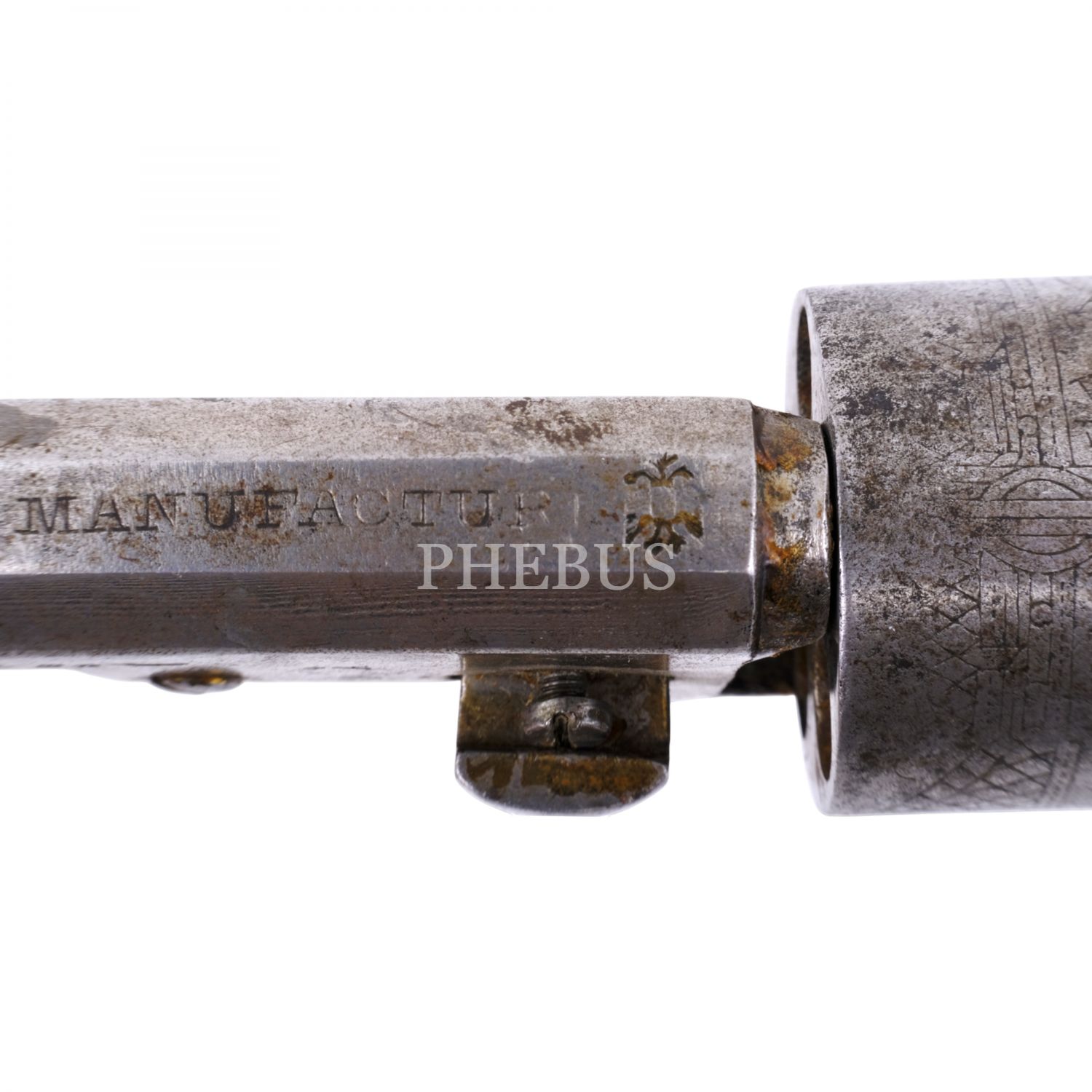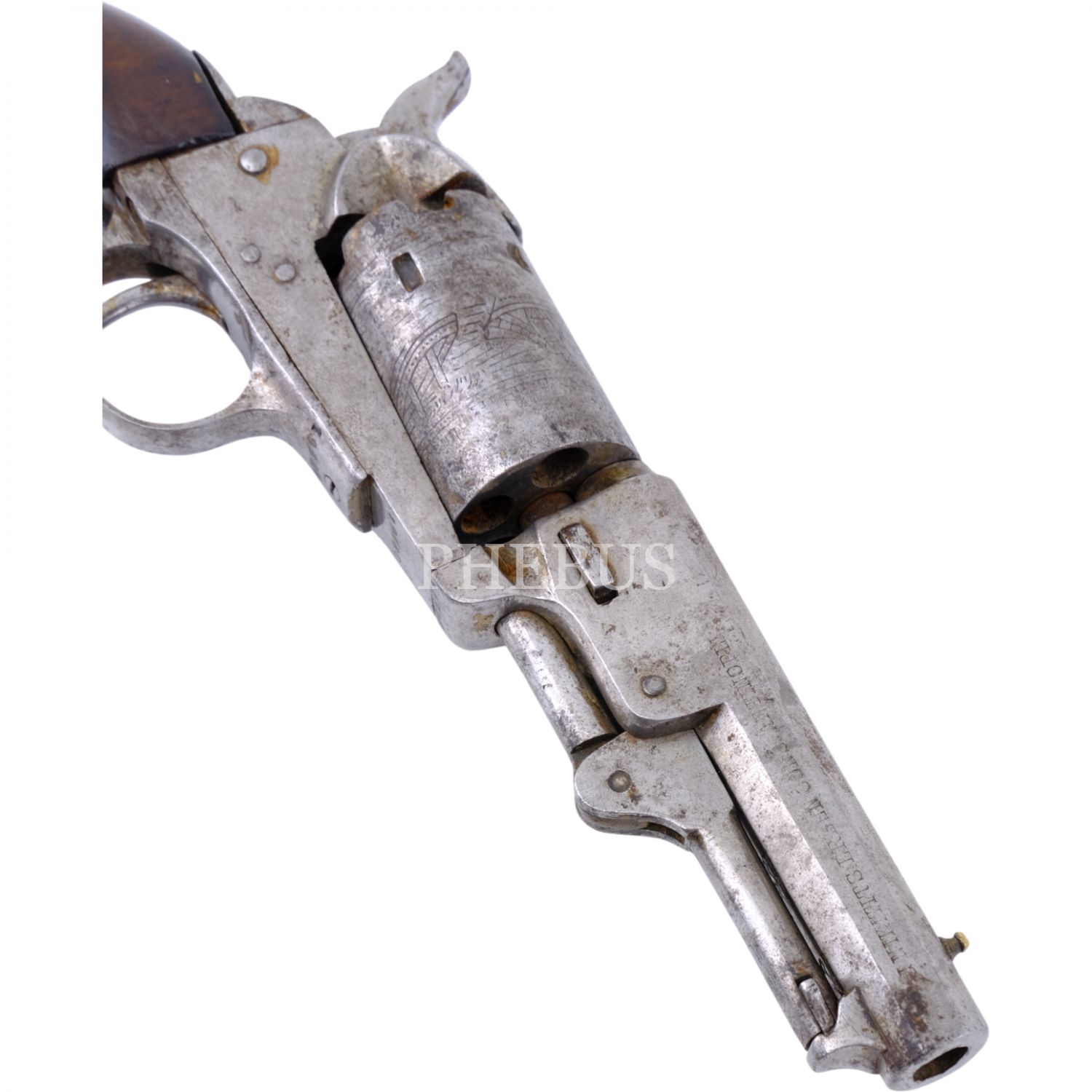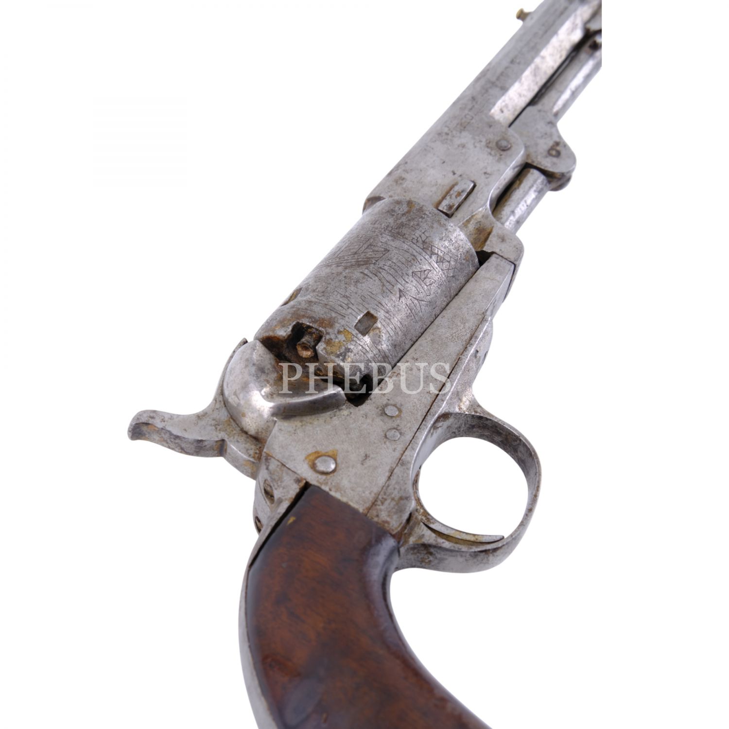 Namlusu "J. Nikitits Erben - Constantinople" ibareli, döner mekanizmalı tabanca, silindir üzerine kalem işçiliğiyle, denizden surlarla ayrılmış bir şekilde İstanbul tasviri işlenmiştir, 23x10 cm...