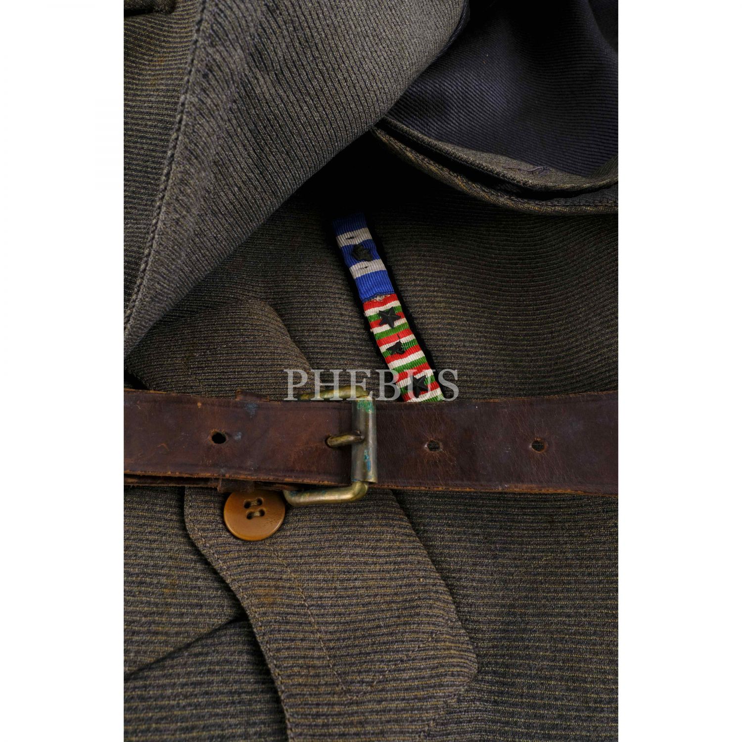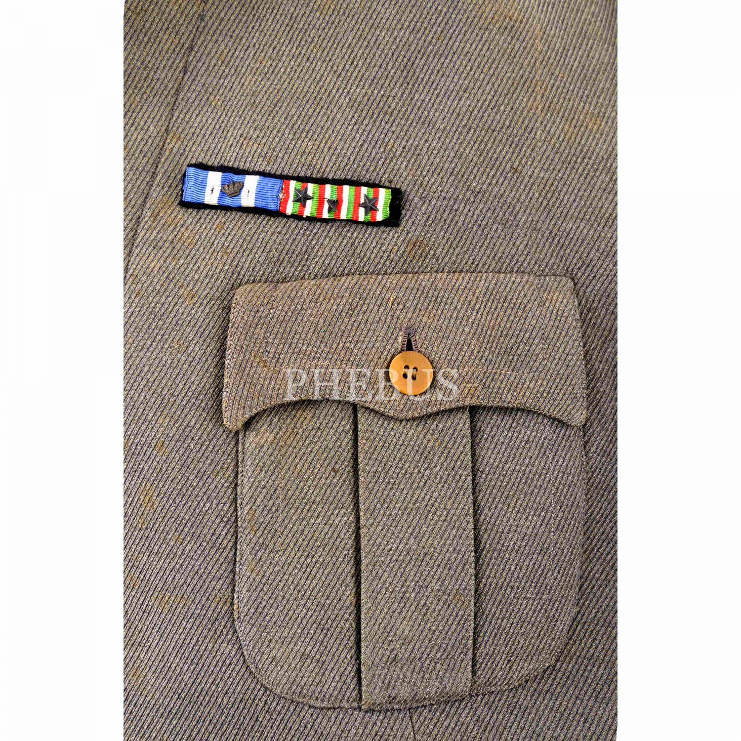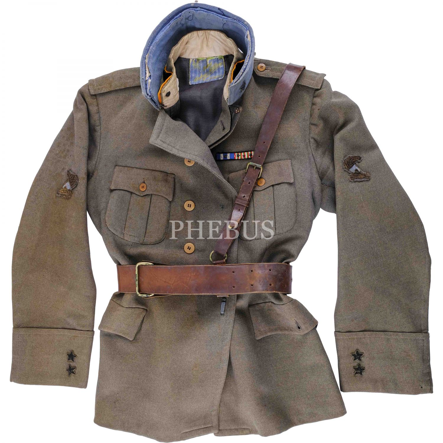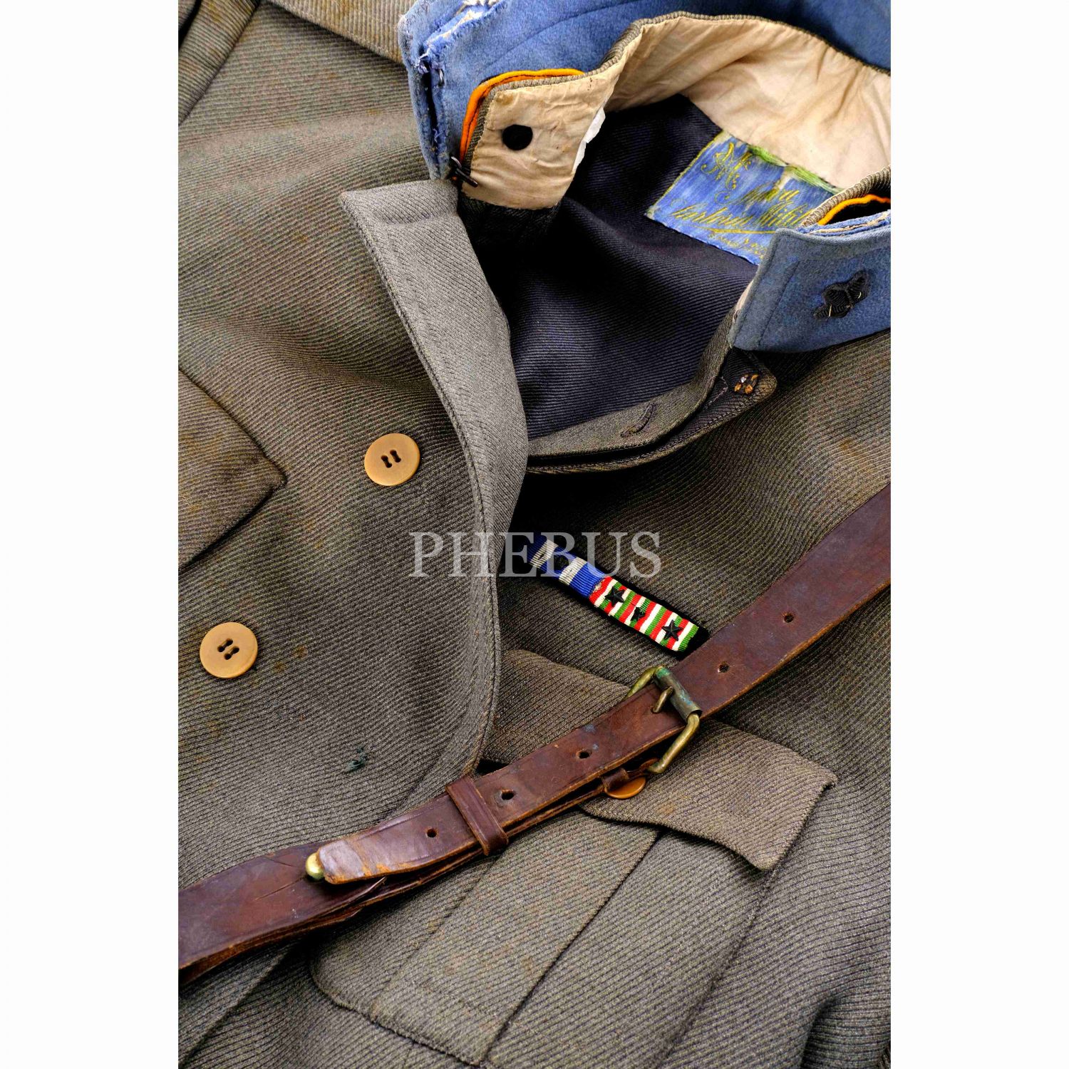 İstanbul'un fiili işgaline katılan bir İtalyan askerinin üniforması... Lot içeriğinde yer alan parçalar: Ceket, ceket/üniforma yakası, deri palaska, "43" ibareli ve içi "Sartoria Militare R. Bacci (Pisa)" reklamlı şapka, yine "43" ibareli bir yedek şapka, şapkaların muhafazası için kullanılan, üzeri İtalyanca firma reklamlı karton kutu...