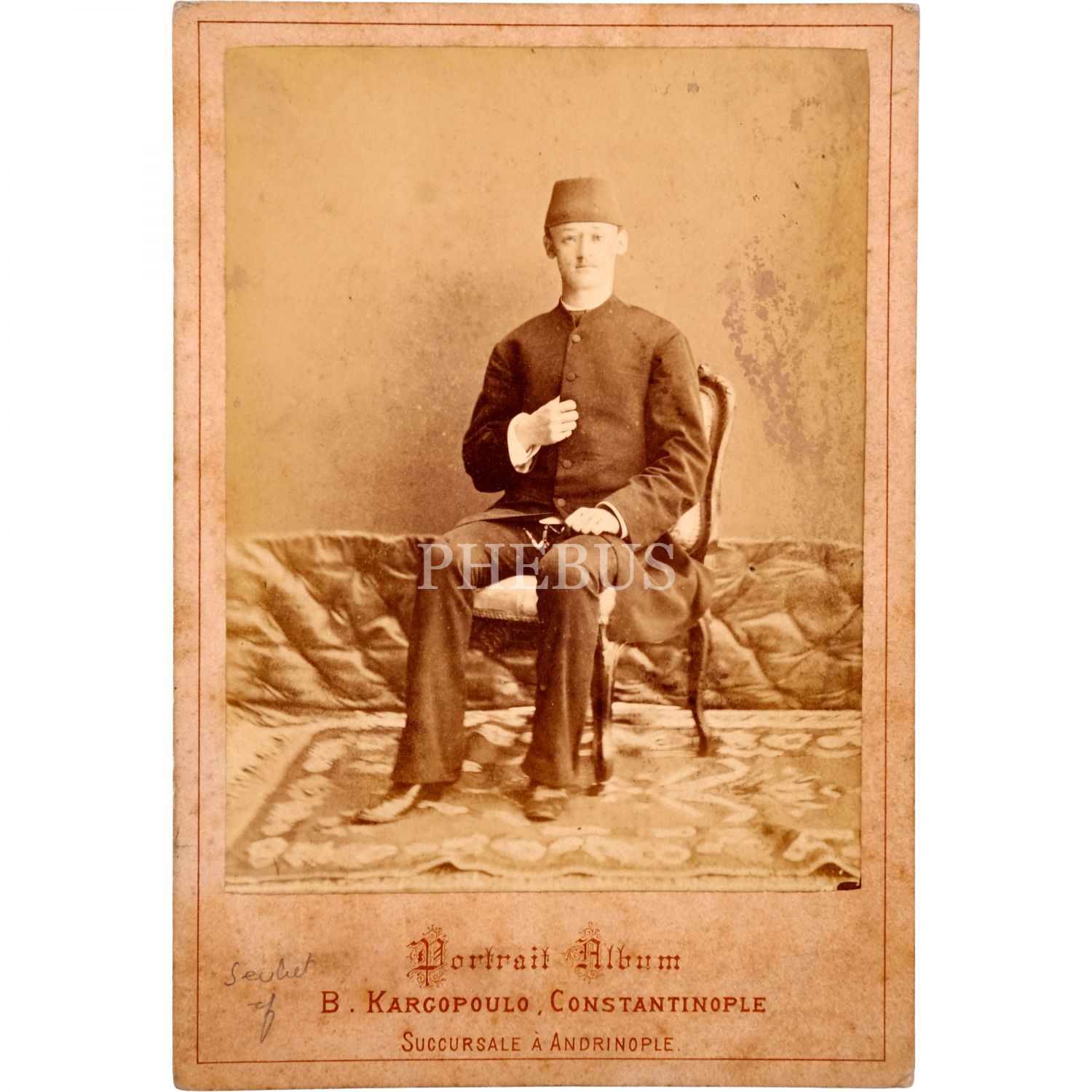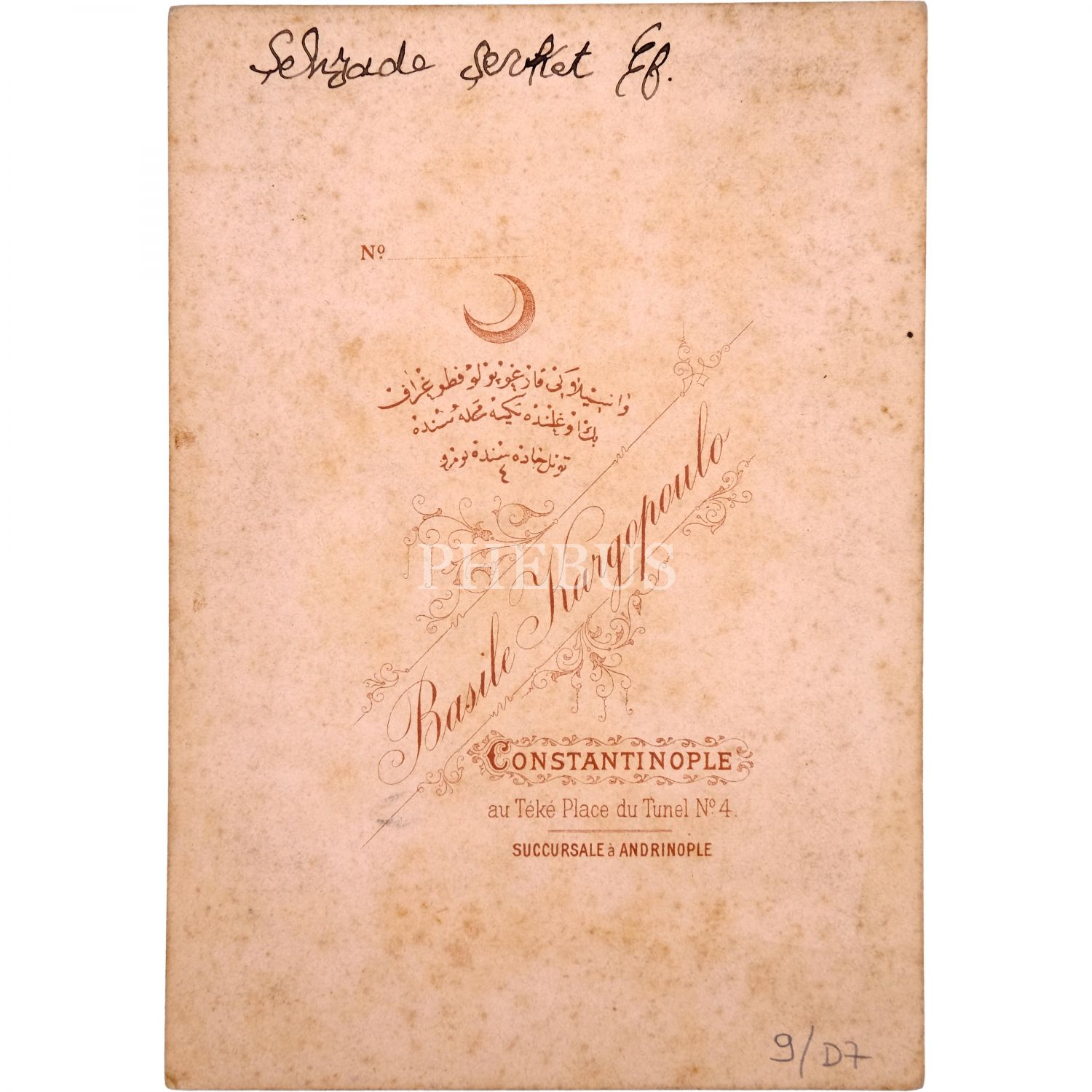 Sultan Abdülaziz'in torunu, Şehzade Yusuf İzzeddin Efendi'nin oğlu Şehzade Şevket Efendi'nin, B. Kargopoulo Fotoğrafhanesi'nde çektirdiği fotoğrafı, 11x17 cm...