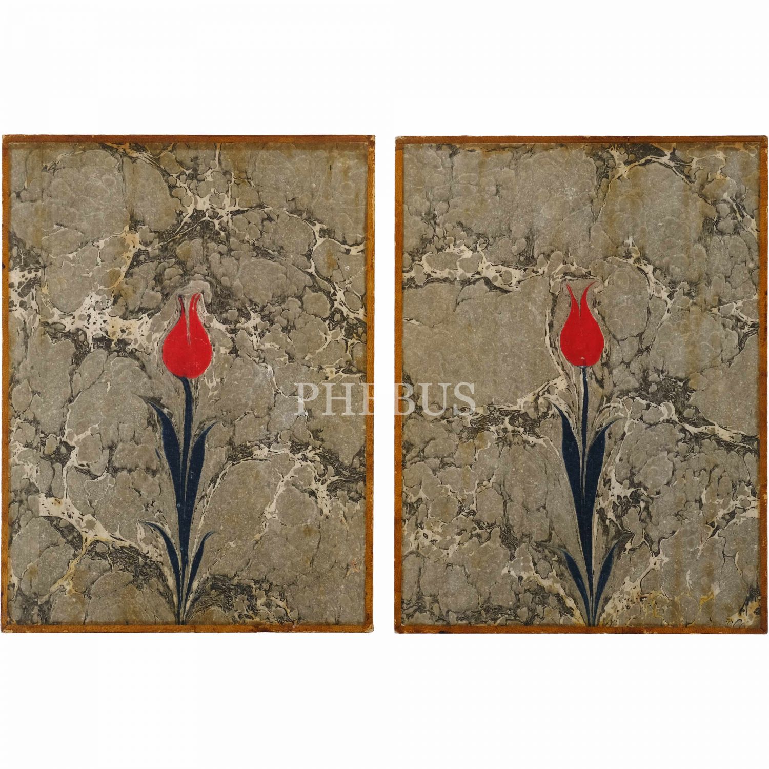 Mustafa Düzgünman, cilt yapılmak üzere murakkaya gerilmiş bir çift lale ebrusu, her biri: 30x22 cm...