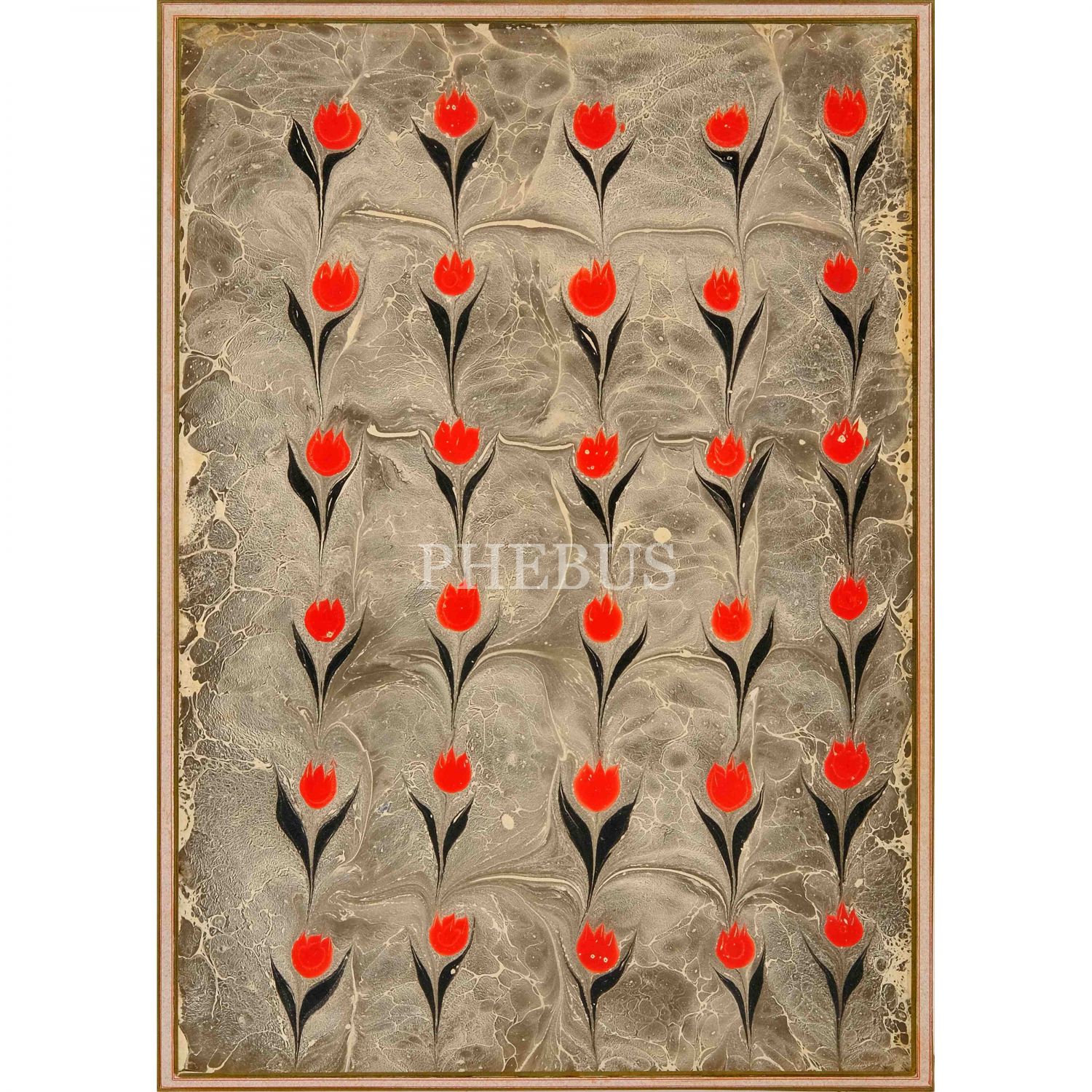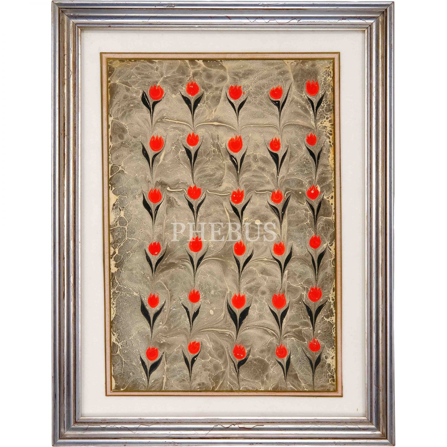 Necmeddin Okyay çiçekli yol ebrusu, ebru ölçü: 34x49 cm, çerçeve içi paspartu: 42x57 cm...
